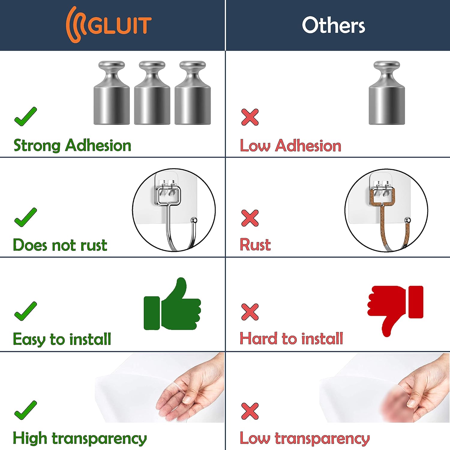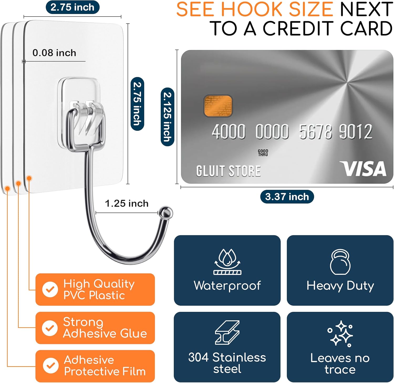GLUIT Adhesive Large Wall Hooks for Hanging Heavy Duty 22 lbs Hook for Walls No Damage (12 Large Hooks)