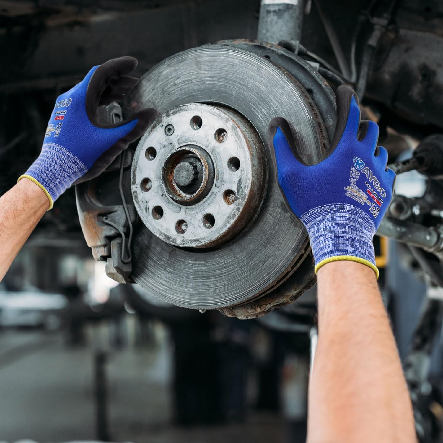 KAYGO Safety Work Gloves MicroFoam Nitrile Coated-3 Pairs, KG18NB,Seamless Knit Nylon Glove with Black Micro-Foam Nitrile Grip,Ideal for General Purpose,Automotive,Home Improvement,Blue XX-Large
