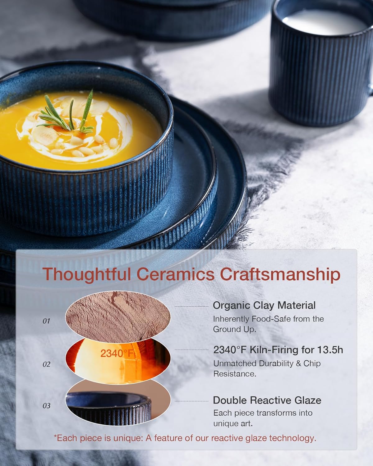 - [Premium Ceramic Durability]: Fired at 2340Β°F for 13.5 hours, our dishes boast impressive weight and thickness. They can resist chipping, scratching and daily wear, ensuring reliable kitchen use. Enjoy worry-free daily use, even with silverware