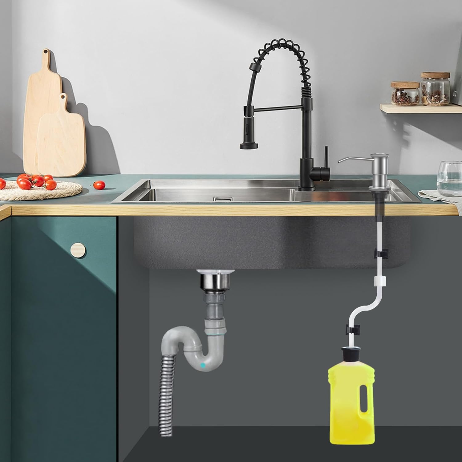 - HIGH QUALITY: High-Grade silicone tube is soft and elastic, not easy to bend under the countertop, the check valve make the soap prime in the tube.