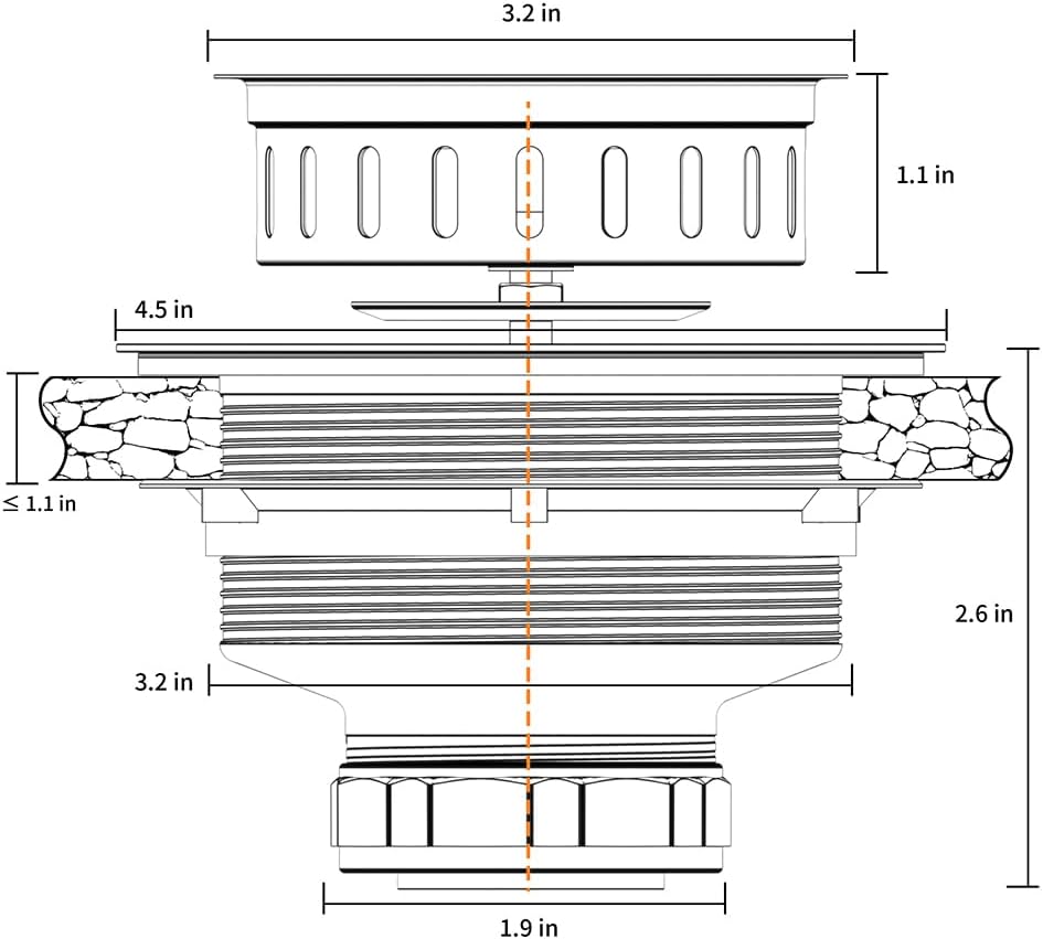 - 3-1/2 INCH KITCHEN SINK DRAIN: Fit for most American standard kitchen sinks with Universal 3-1/2 inch drain hole.