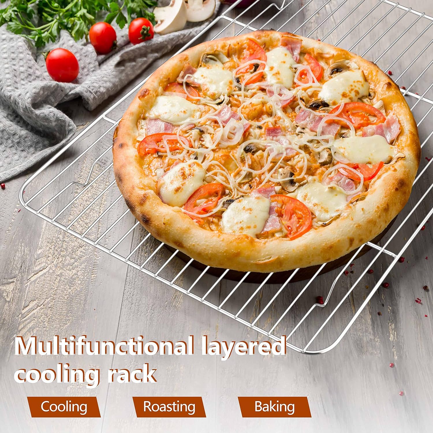 - Easy to Clean, the roaster pan and baking racks featured with brushed finished and smooth mirror finish surface, which reduces the risk of food sticking, deep full sides all around prevent food juice from flowing everywhere to keep your oven neat, baking tools in this set are all easy to clean by hand-washing and dishwasher safe