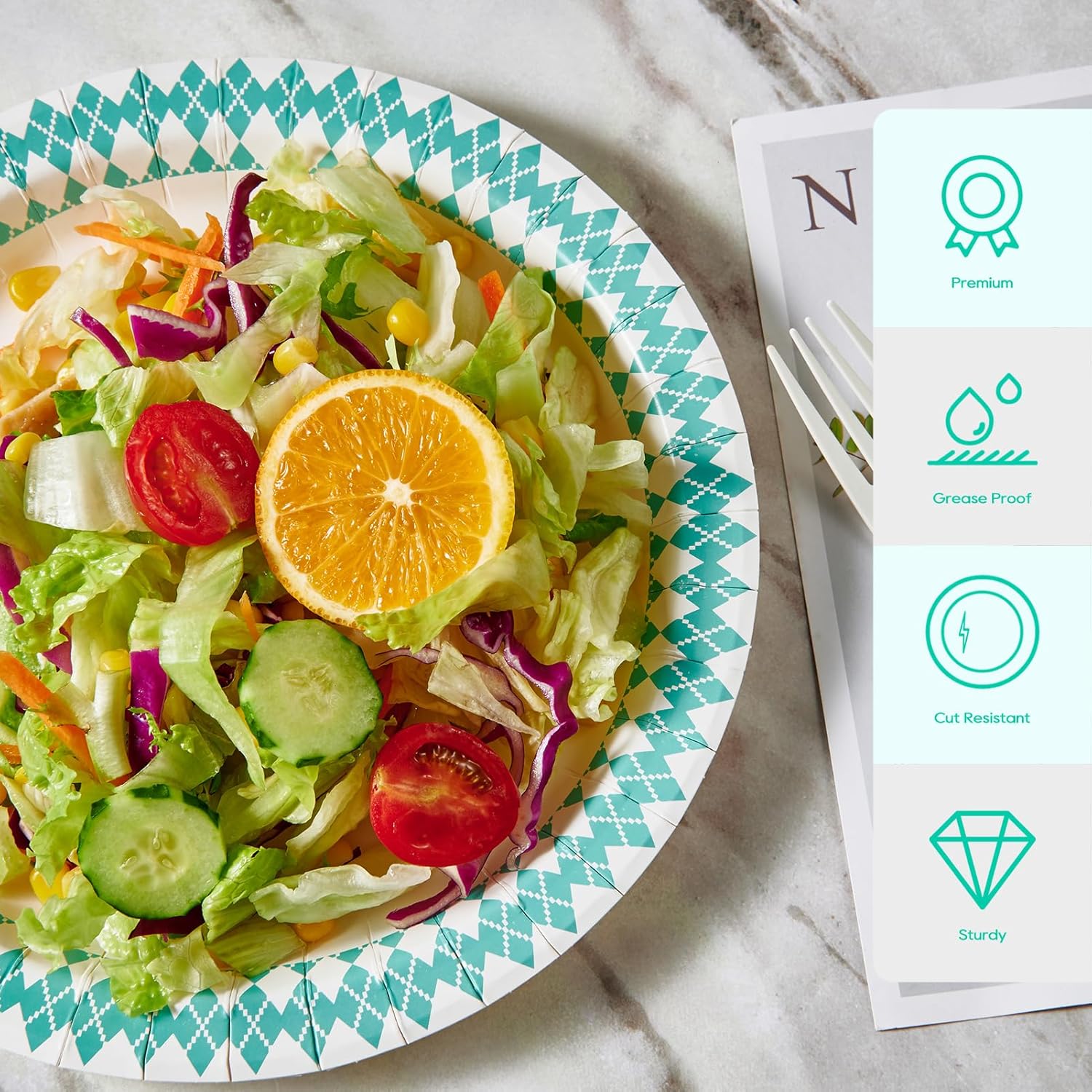 - Everyday disposable paper plates Perfect for dinner parties Summer picnics, decorative paper plates with blue pattern diamonds for a variety of themed parties and events