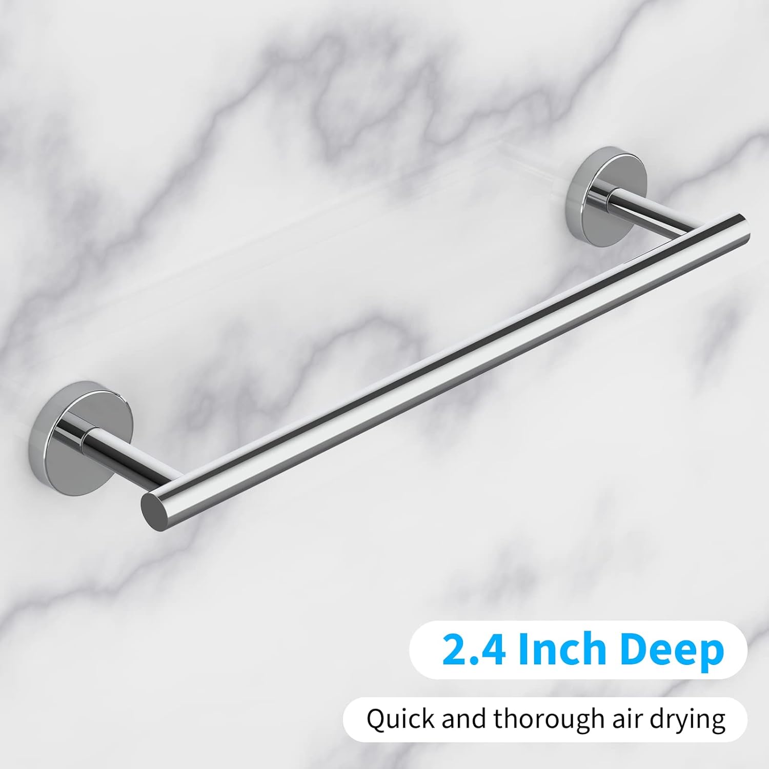 - 【BRUSHED Polished Chrome FINISH】: Polished Chrome towel bar Polished Chrome stainless steel finish is built to resist daily scratches and tarnishing, Stylish and exquisite Polished Chrome process make the towel racks look fashion and feel comfortable. bathroom towel holders no fade, stain-proof effectively to solves the accumulation of dust and oil.