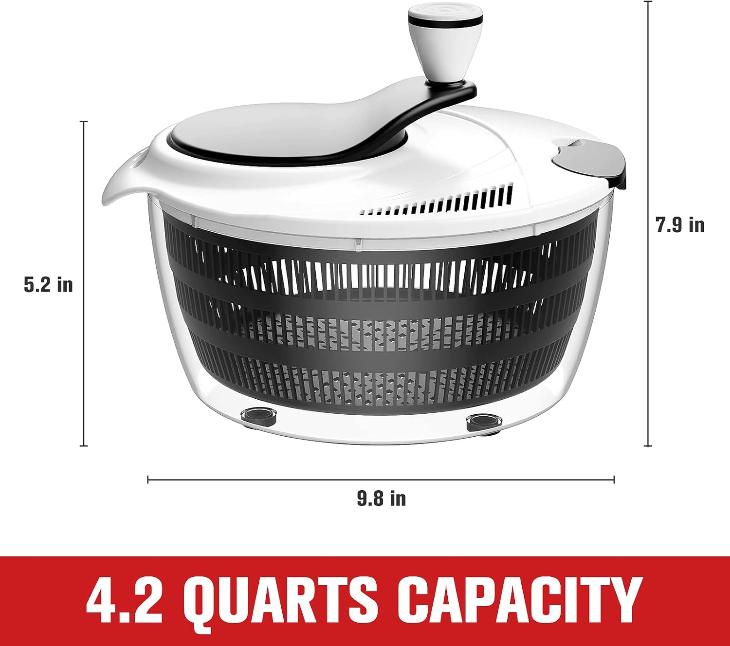 Smile mom Salad Spinner Large Lettuce Spinner Kitchen Gadgets, Large Salad Spinner Vegetable Washer, High Efficiency for Home Kitchen Washing & Drying Leafy Vegetables With Rotary Handle 4.2Qt Black