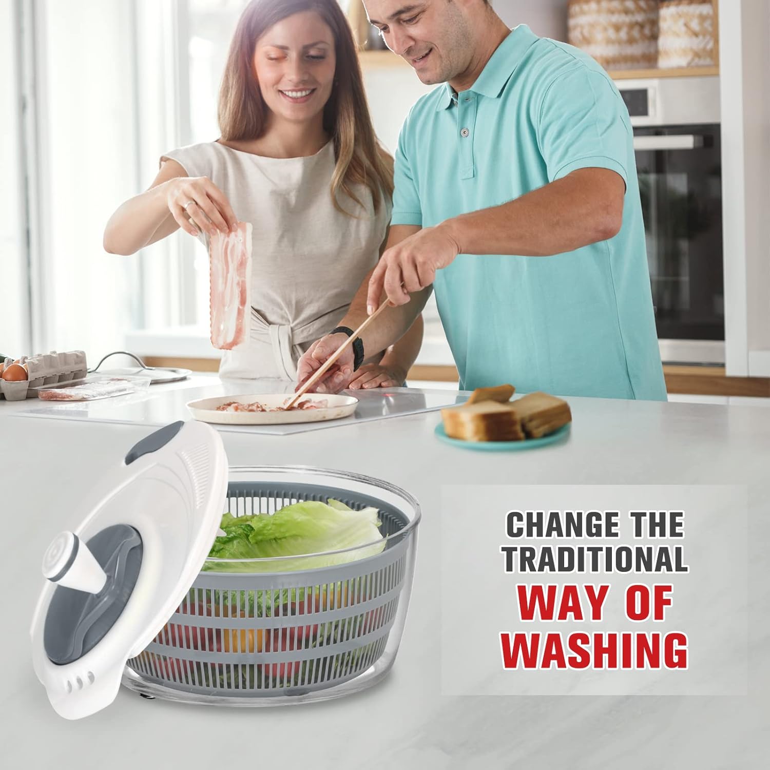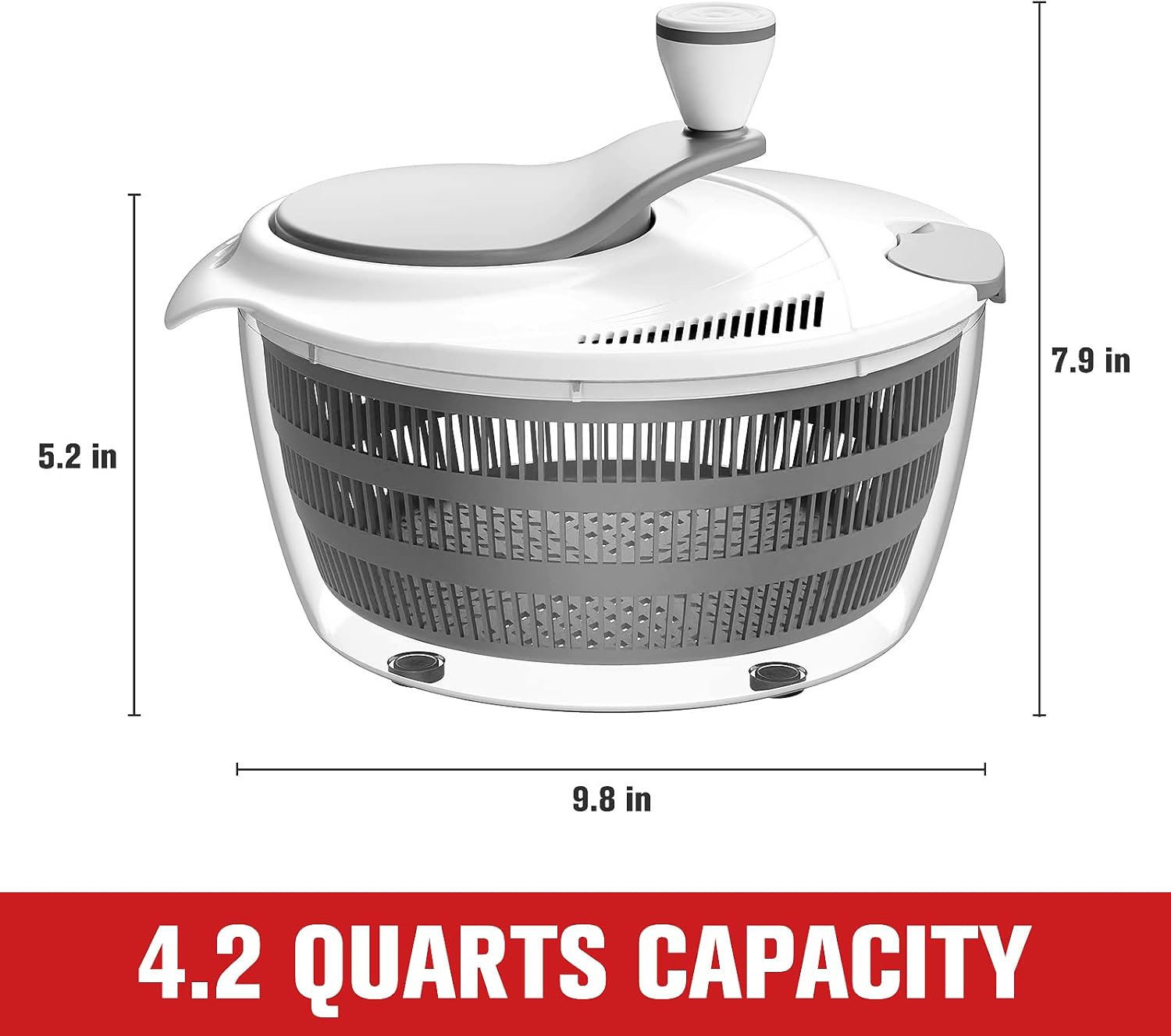 Smile mom Salad Spinner Large Lettuce Spinner Kitchen Gadgets, Large Salad Spinner Vegetable Washer, High Efficiency for Home Kitchen Washing & Drying Leafy Vegetables With Rotary Handle 4.2Qt Grey