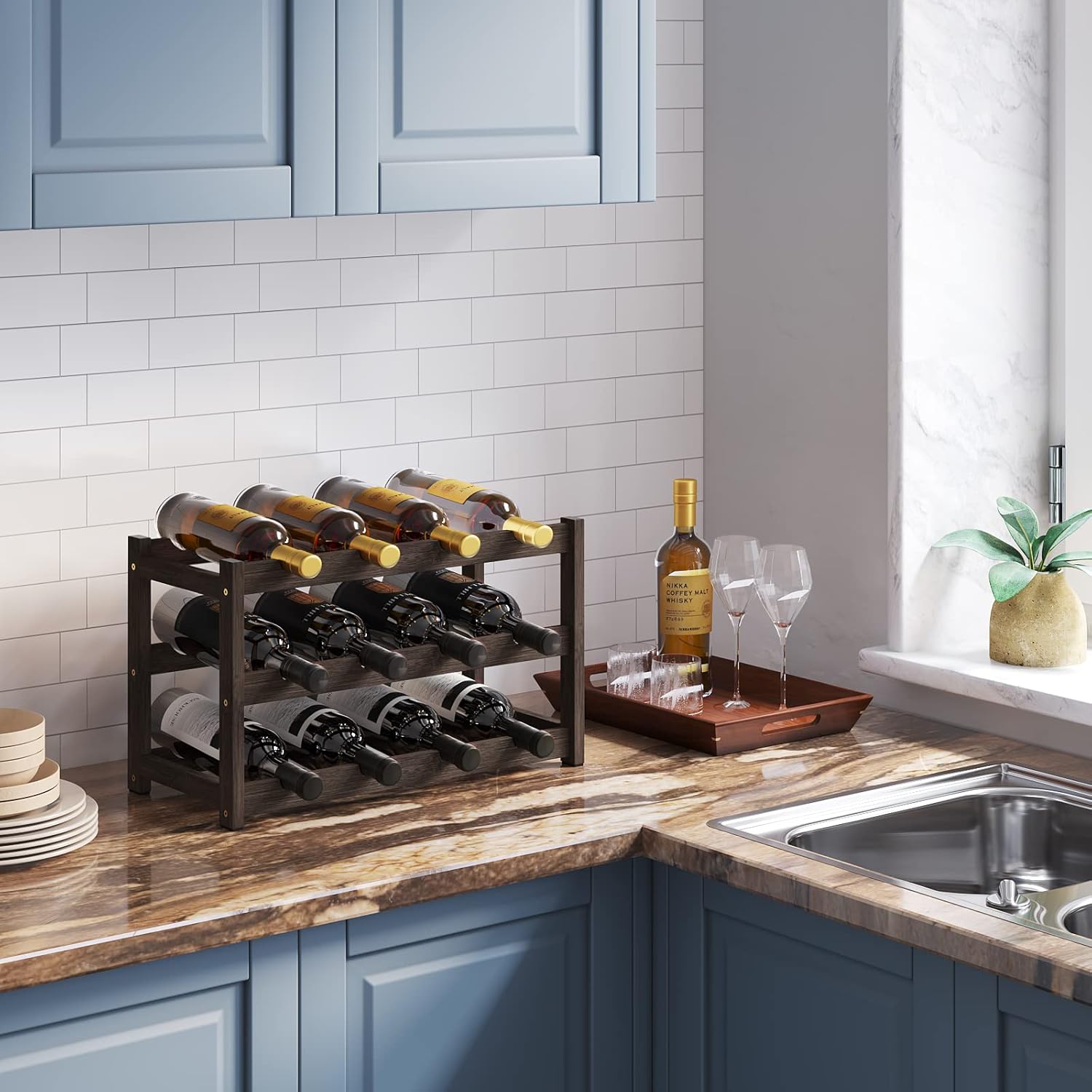 - NO SHAKING BAMBOO AND NON-SLIP MATS: Good materials tend to extend the life of the product; The wine holder is made of 0.55 inch thick bamboo and the bottom of the wine racks countertop is equipped with four non-slip pads, so it won't shake
