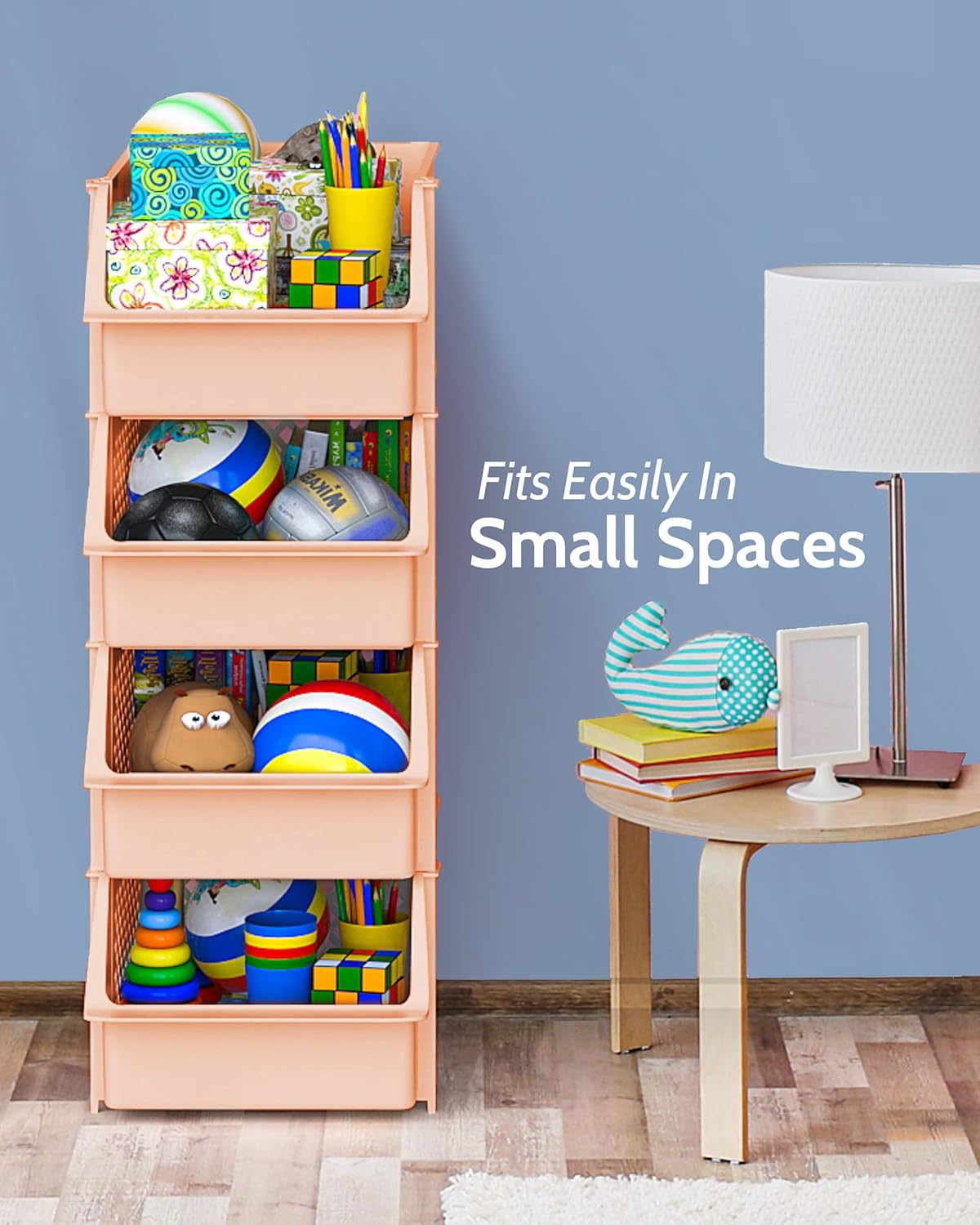 - SPACE SAVING -These large stackable storage bins open front fit in any corner or area like kitchens, bathrooms, bedrooms, and offices. Nestable when empty to save more space.