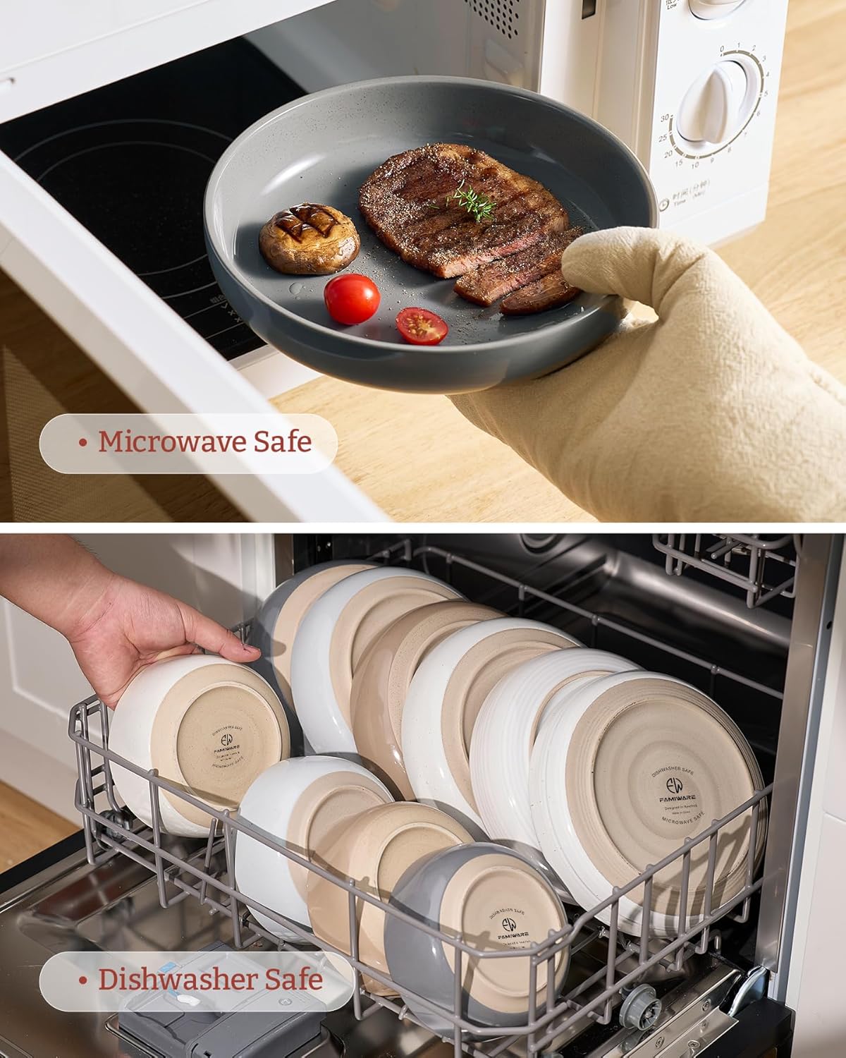 - 【DISHWASHER AND MICROWAVE SAFE】Our pasta bowls have passed microwave and dishwasher safe testing at internationally accredited laboratories. Each plate and bowl is dishwasher safe and microwave safe.