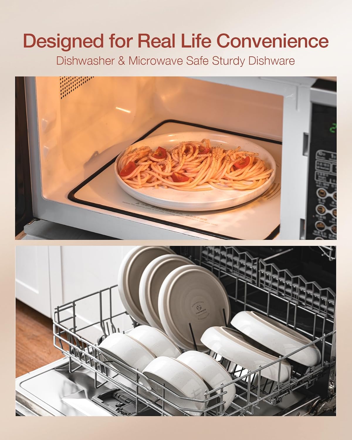 - 【DISHWASHER AND MICROWAVE SAFE】Our dishes have passed microwave and dishwasher safe testing at internationally accredited laboratories. Each plate and bowl is dishwasher safe and microwave safe.