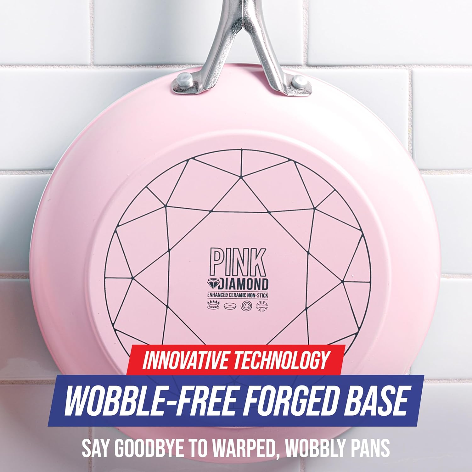 - DIAMOND-TOUGH EXCELLENCE: Metal utensil safe surface with diamond-infused ceramic nonstick - 5x harder and 10x longer lasting than traditional coatings. Tough enough for your toughest recipes!