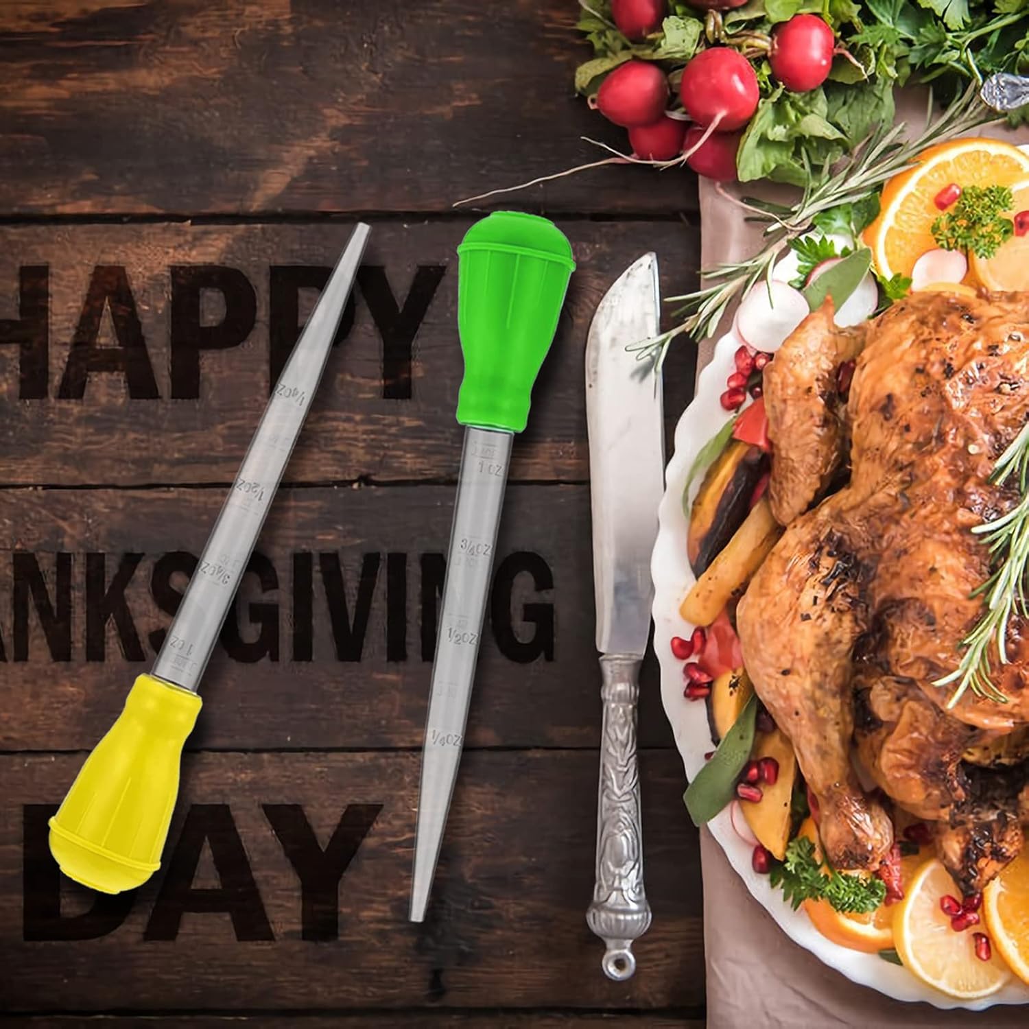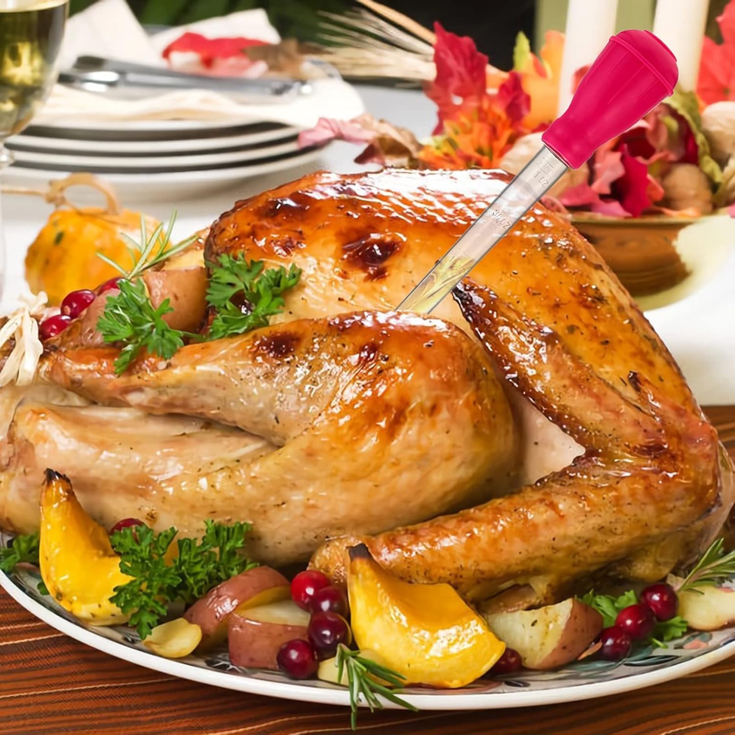 - CLEAR MEASUREMENT MARKS -- Our transparent turkey baster with embossed ml and oz measurement marks, which is clear and easy to read, ideal for accurate viewing of contents and volume.