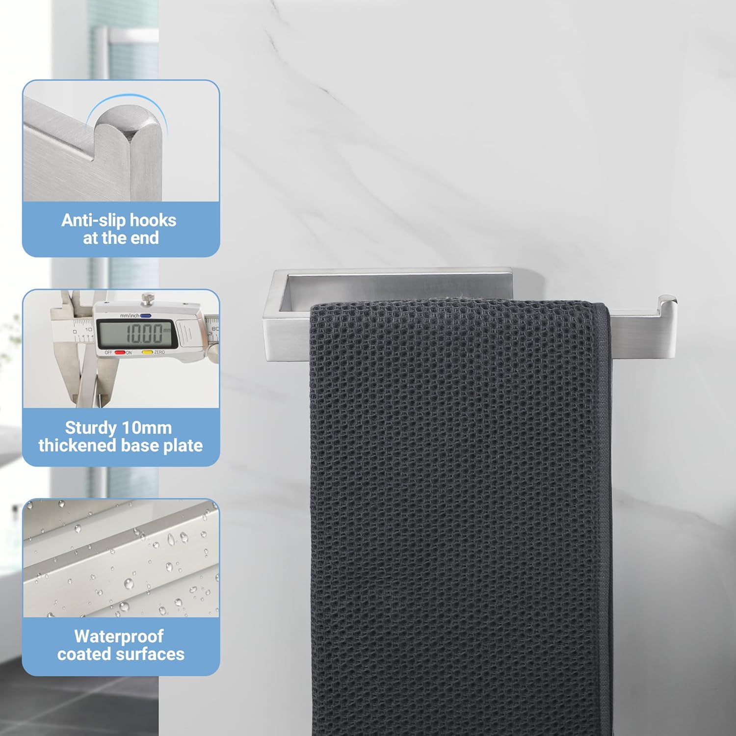 - WIDE APPLICATION - Perfect for shower, bathroom, kitchen, laundry room, cabinets, wash basins, etc. Please note, the brushed nickel towel bar can only be fixed by drilling, not by pasting.