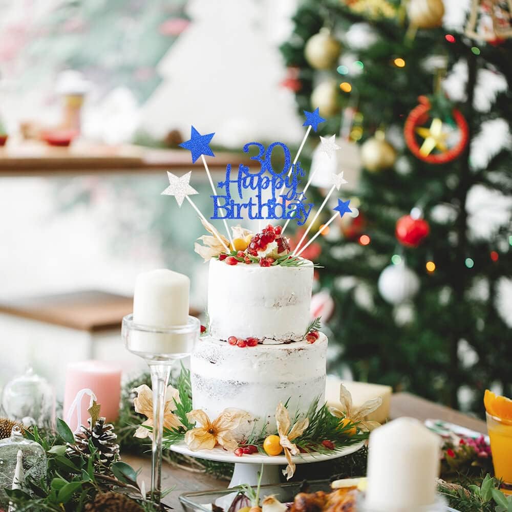 Glittery 30th Happy Birthday Cake Topper with Star,Personalised 50 Birthday Cake Toppers Party Decorations Party Supplies for Men Women Blue