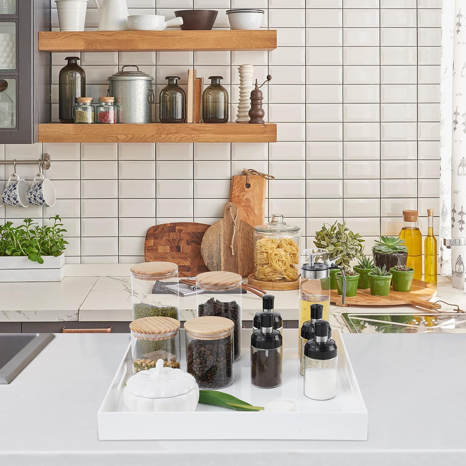 - Multi-purpose: Elegant Square ottoman tray with safe rounded edge, It’s just the right size tray to put on your rectangular or square ottoman, The tray can be placed in multiple areas also, Dinning room kitchen、 Coffee table, It also can be used as vanity trays