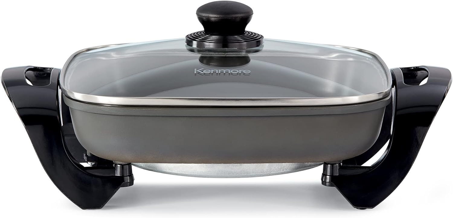 - VERSATILE ONE-POT COOKING - With high sides and a vented glass lid, the Kenmore Electric Skillet can be used to cook everything from pancakes to stews. The cool touch handles let you safely transport it from counter to table, making it a versatile one-pot wonder for various cooking needs. This feature is appreciated by users who enjoy cooking a wide range of dishes.