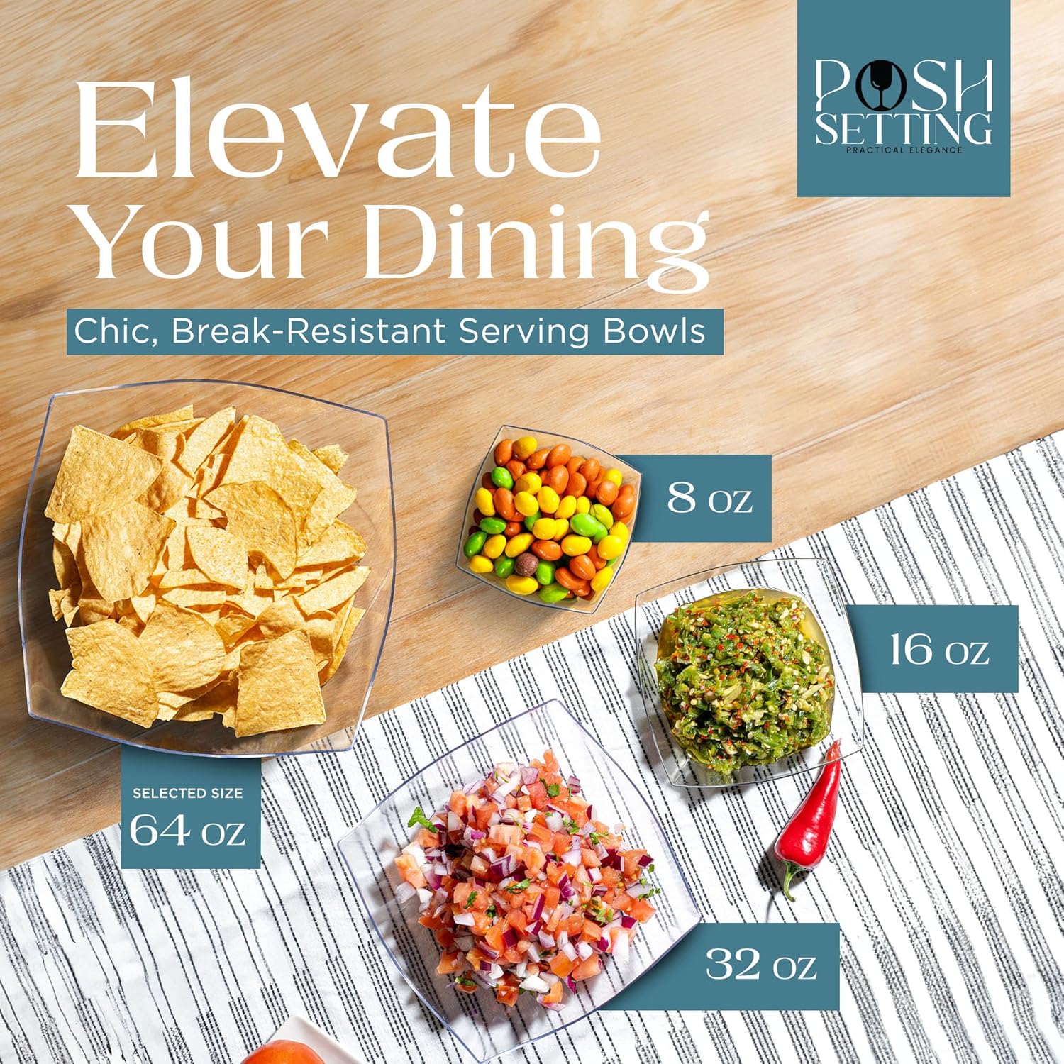 - MULTIPURPOSE USE: These 64 oz clear plastic serving bowls are great for any occasion. Whether you're hosting a salad bar, serving snacks, candies, chips, or even using them for arts and crafts, these thanksgiving serving bowls meets all your needs. Enhance your party setup with these practical and stylish bowls that fit seamlessly into any event. Use them as candy dishes, chip bowls for parties, clear plastic bowls, taco bar serving set for a party, and party bowls.