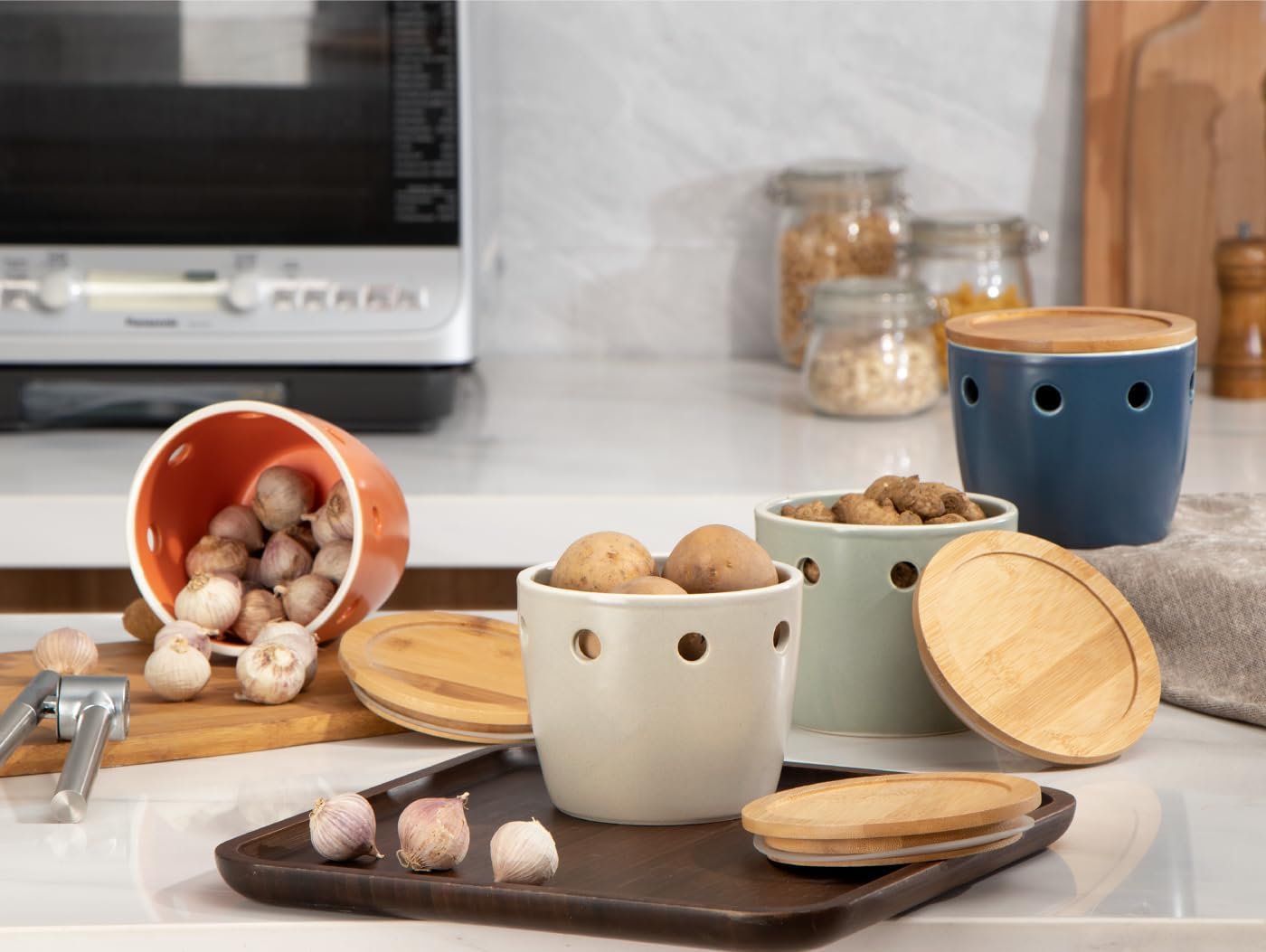 - 【Multifunctional Containers】: Not only for garlic savers, also tiny exquisite containers to store onion, ginger, and potato, an ideal kitchen storage device for you.