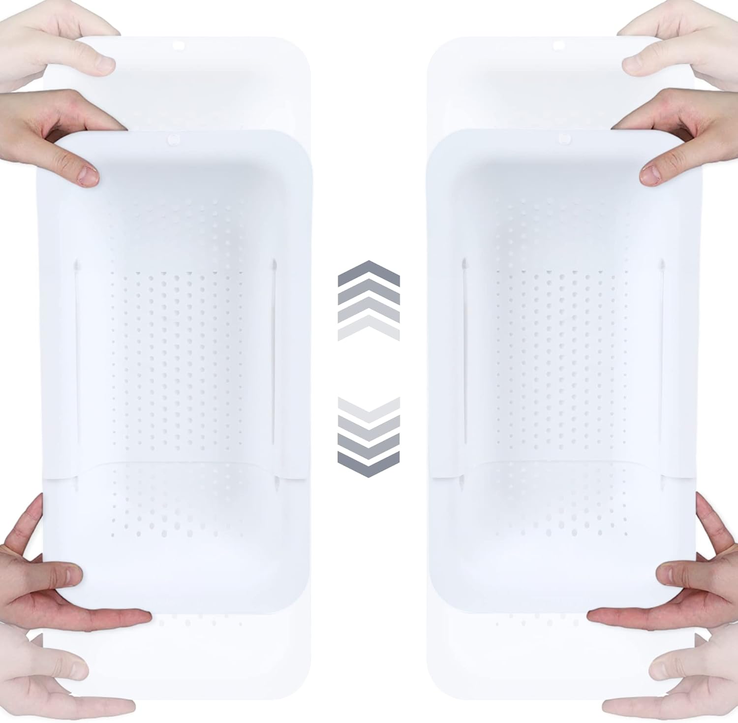 BLUE GINKGO Sink Colander Baskets - (Pack of 2) Wash Vegetables and Fruits, Drain Cooked Pasta and Dry Dishes - Extendable - New Home Kitchen Essentials (2 White)