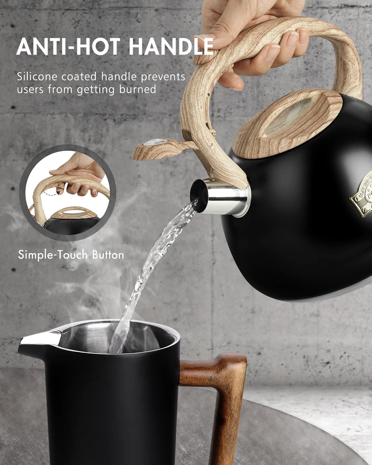 - Audible Whistle: The whistle of this kettle will grab your attention while you are focusing on other issues such as housework or games at the same time. Simple and time saving with no stress.