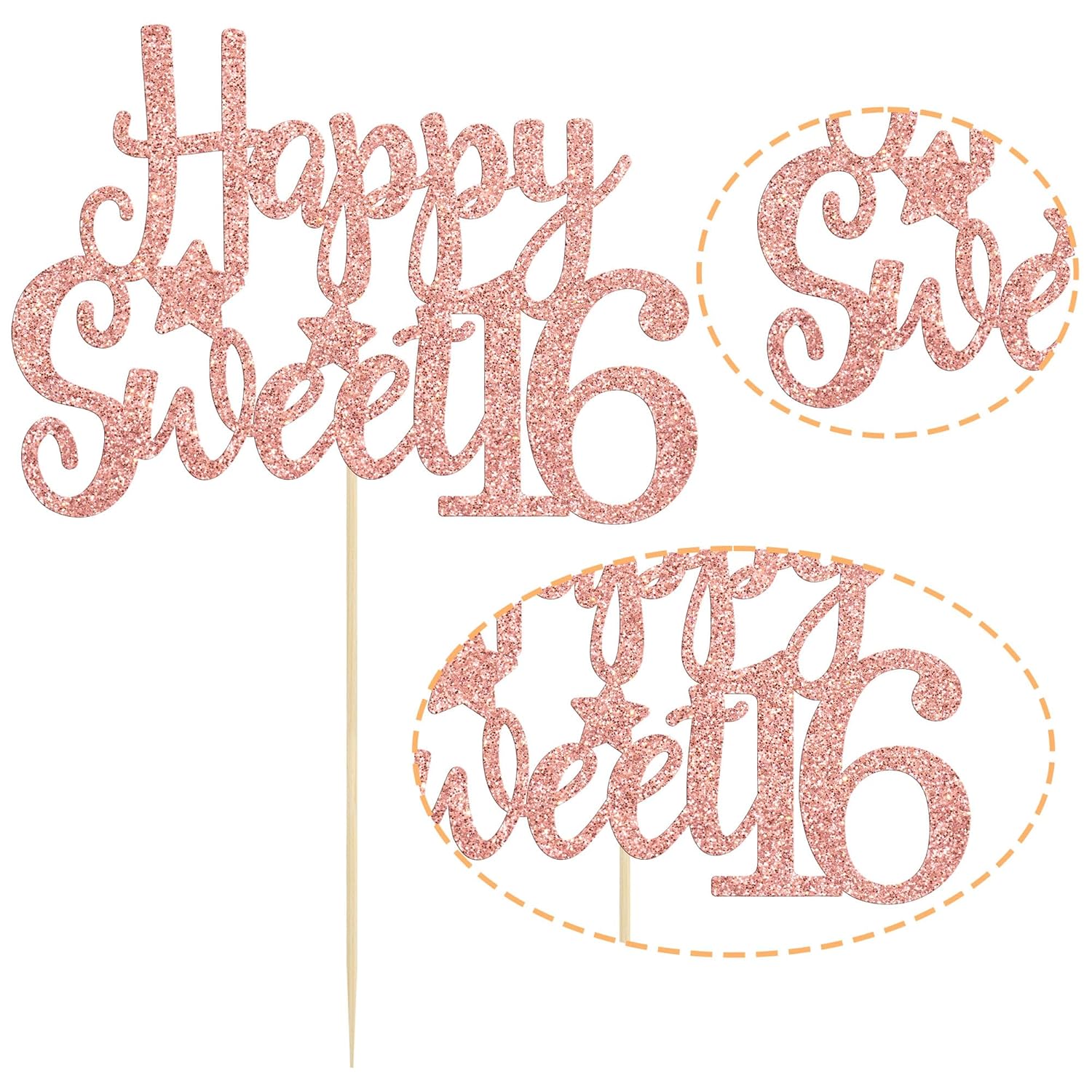 - ๐๐Premium Material: This Happy Sweet 16 Cake Topper is made of high quality 300 gram card stock and food-grade toothpick, very safe to put them on cakes, cupcakes, ice cream, fruits, pie, dessert, cheese or any dish and food appetizer you want to decorate fruit theme party decorations.