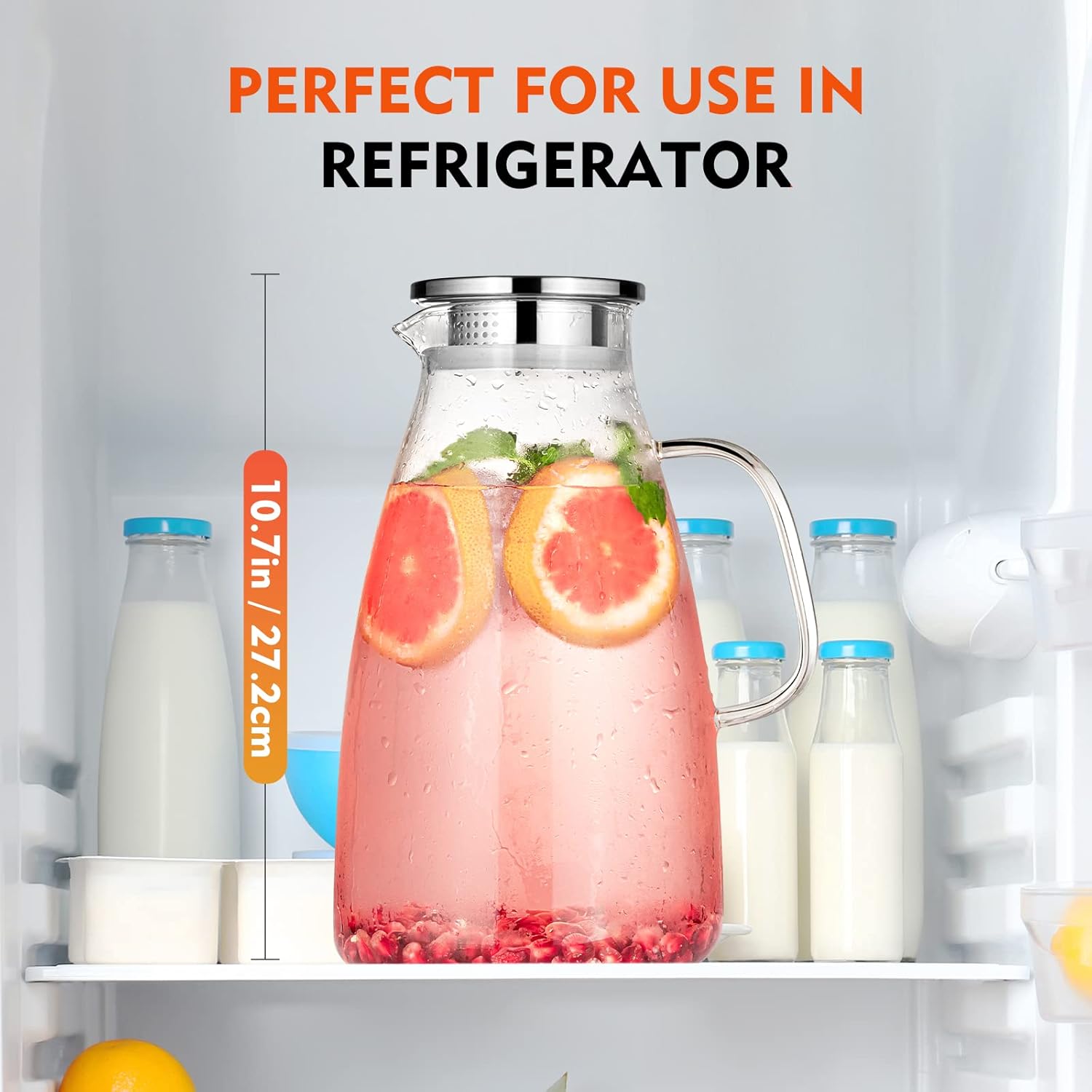 - DURABLE & SAFE - Our water pitcher is made of lighter and stronger borosilicate glass with lead-free for a healthy life. This glass is tested to be the most reliable type of glass and can withstand temperatures from 0 to 300 β. It is safe that you put pitcher on the stovetop or refrigerator, so you can enjoy cold or hot drinks anytime.