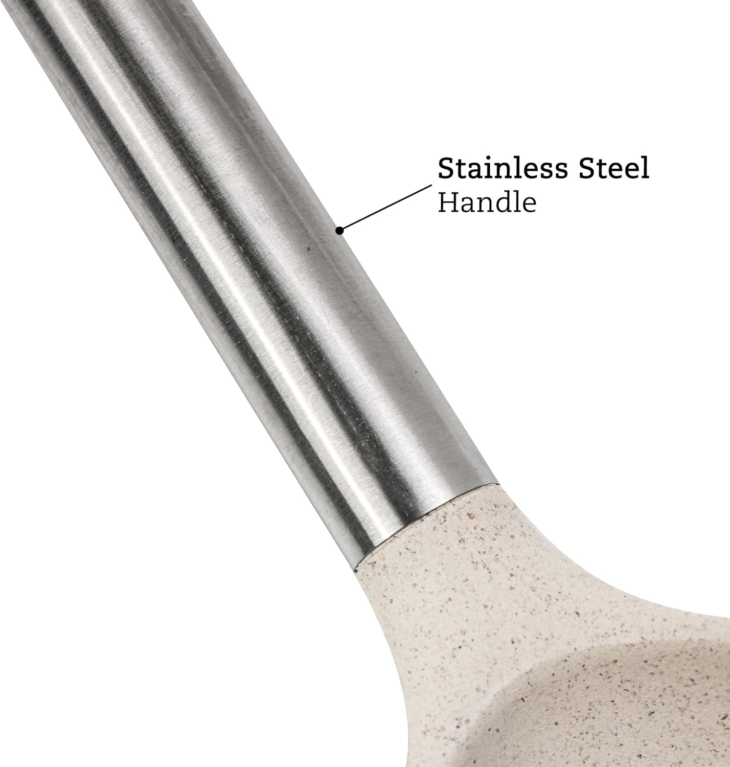 - STAINLESS STEEL HANDLES: Sturdy handle made of durable, corrosion resistant stainless steel that wonβt rust so you can count on it to last; Comes with handy slot in handle for easy hang storage if preferred; Trendy cream color will fit nicely with any kitchen decor