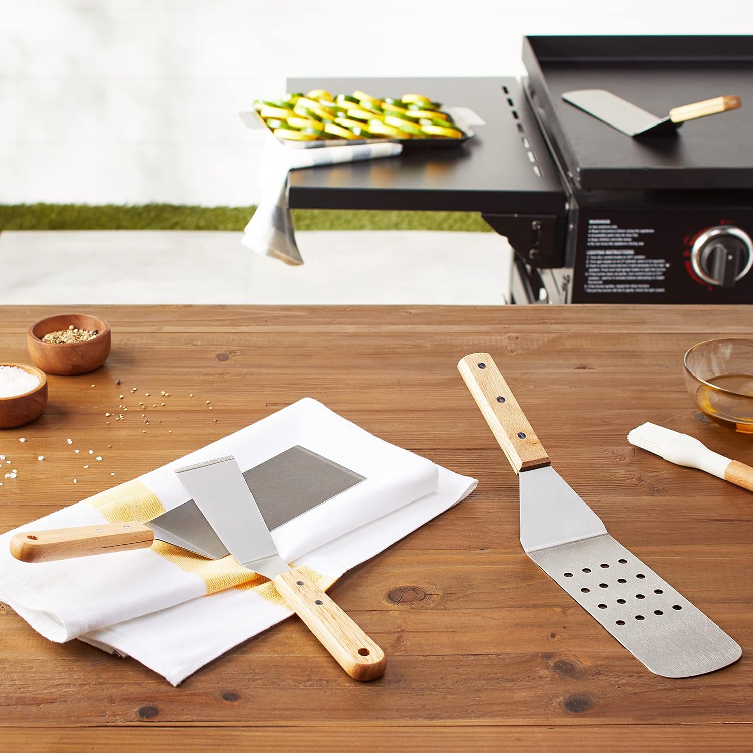 Amazon Basics 4-Piece Stainless Steel Barbecue Flat Griddle Spatula Set, Waterproof, Anti-UV, Durable, Silver
