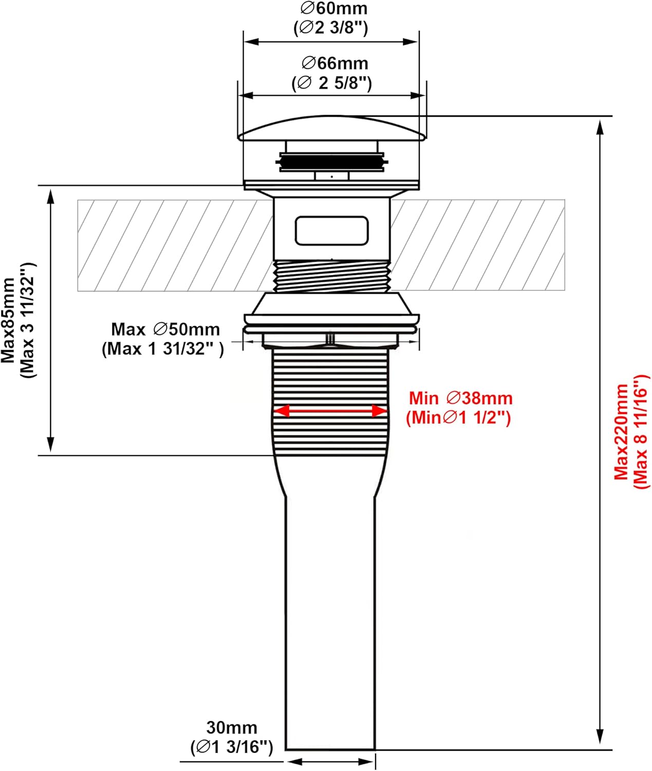 - SIZE AND QUALITY: It fits Standard 1 3/4" Drain Opening and can also fits drains holes diameter varying from 1 1/2" to 1 31/32 inch ( 1.5 to 1.96 inches ) . Which is made of high quality brass and great 304 stainless steel with professional and exquisite craft, which make it quality and durable