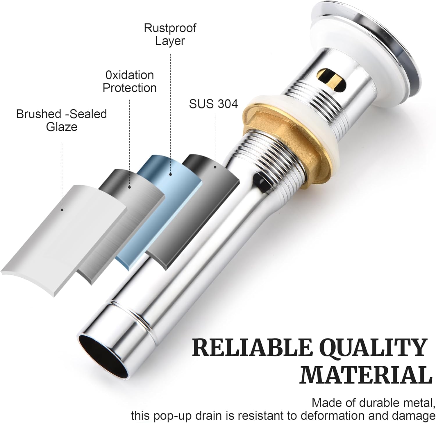 Pop up Sink Drain Stopper with Overflow Chrome for Bathroom Vessel Vanity Sink Art Basin, Big Cap Sink Drain with Overflow, Metal Pop-up Drain Strainer with Detachable Basket Stopper