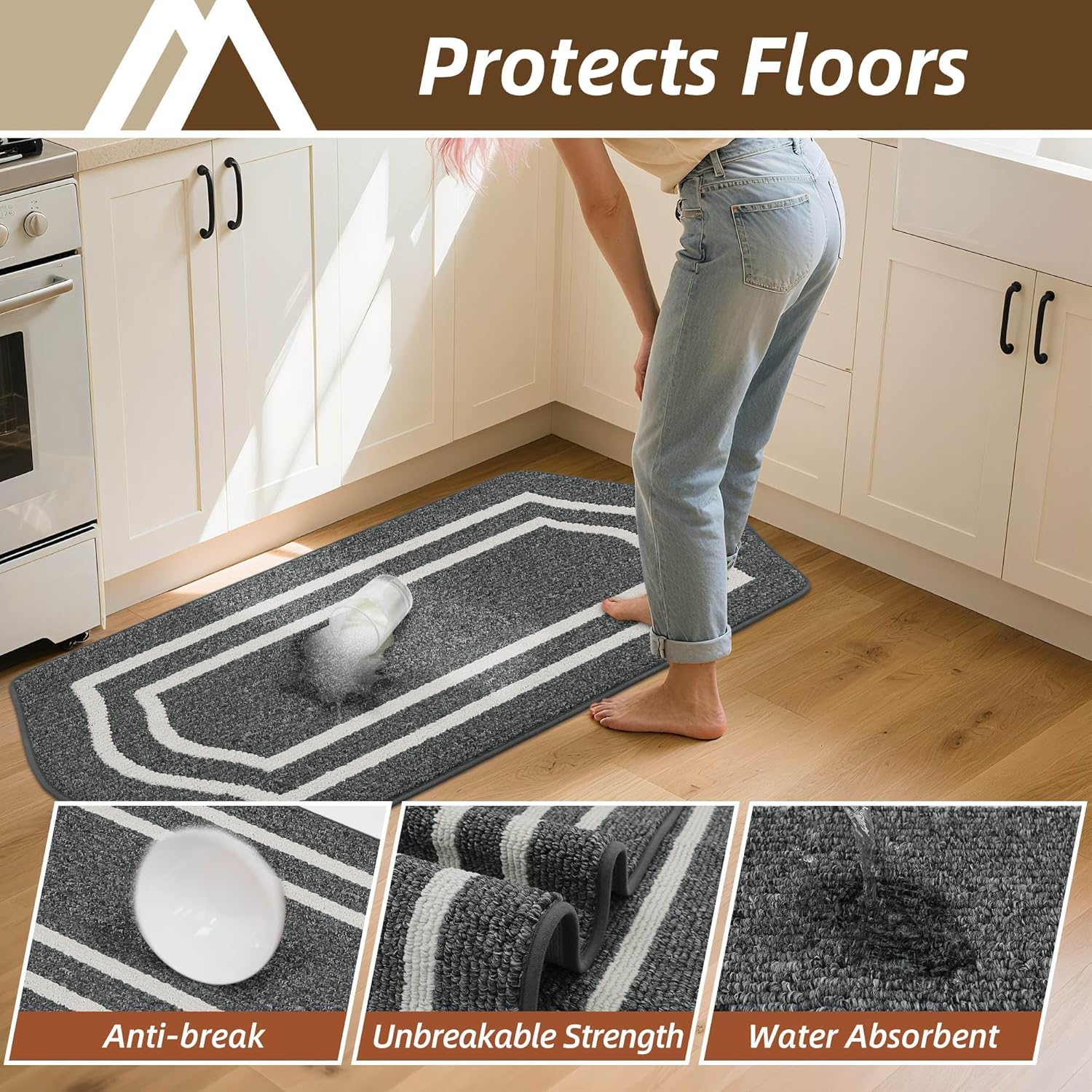 COSY HOMEER Long Kitchen Floor Mats for in Front of Sink Super Absorbent Kitchen Rugs and Mats 24"x48"+24"x59"Non-Skid Kitchen Mat Standing Mat Washable,Polypropylene,Dark Grey,Frame