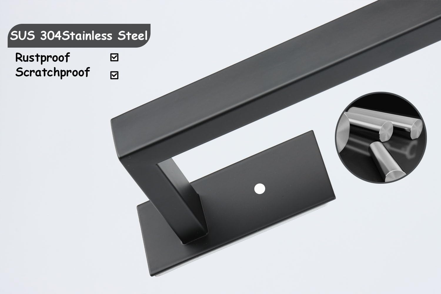 Bathroom Towel Bar Self Adhesive, No Drilling Towel Rack Easy to Install, Hand Towel Holder Made of Premium Stainless Steel Sticky on Hand Towel Hanger for Kitchen, Toilet.(16IN, Black)