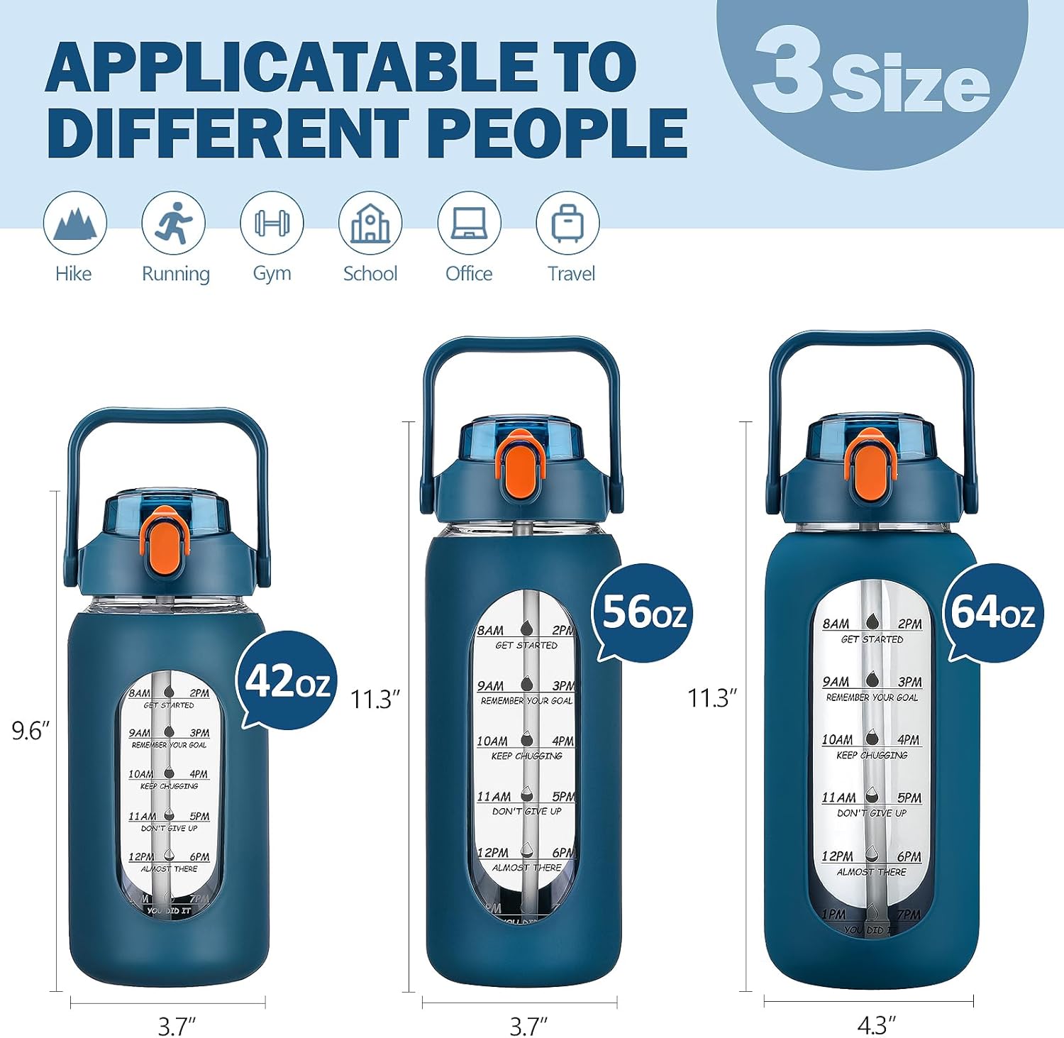 - ❤High-Quality Borosilicate Glass Bottle- This large motivationla water bottle is made of odorless, quality, borosilicate glass. Straw and lid are made of food-grade PP, BPA-free and eco-friendly.