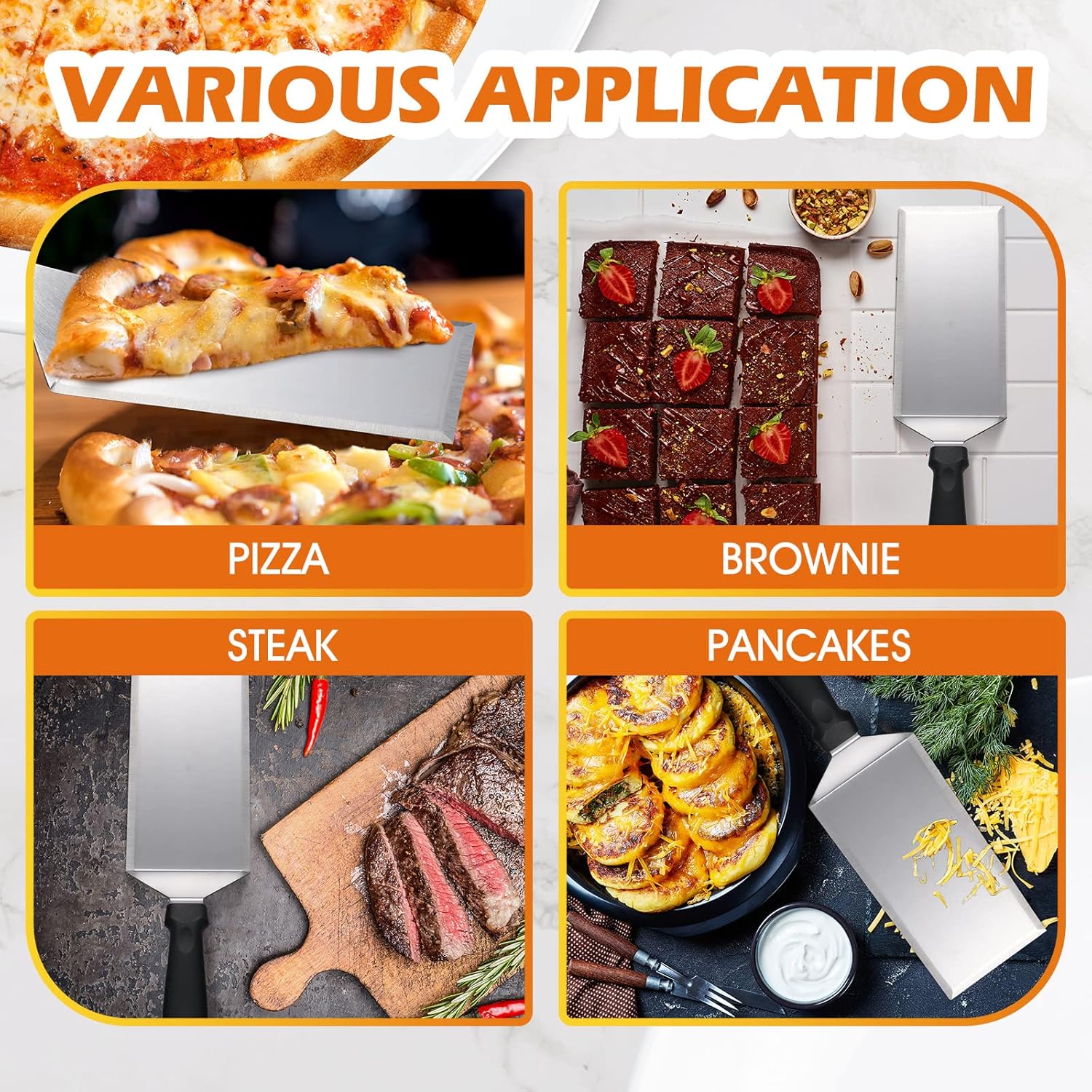 - Wide Applications: this small square spatula can be applied as a cheese spatula, steak frying spatula, cake spatula; Suitable for cookies, brownies, hamburgers, fish, eggs, pancakes, pizza , pie and more
