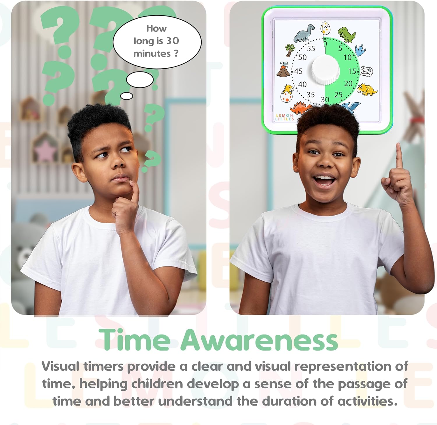 - Educational -- Fun color and characters to engage your child or students with the child timer. Learning time helps kids understand their routines and tasks. This countdown clock helps kids visualize time.