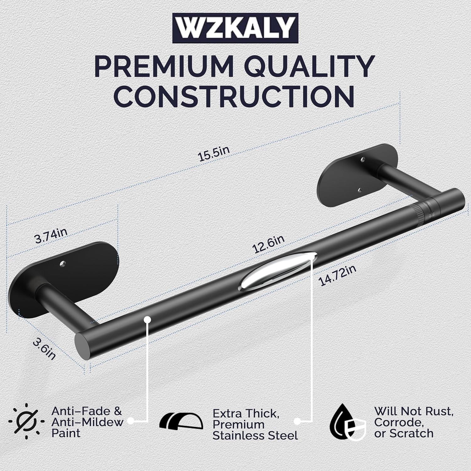 Black Paper Towel Holder Under Cabinet, Self Adhesive or Wall Mounted SUS304 Stainless Steel Paper Towel Holder for Kitchen, Bathroom, Farmhouse, Barbecue and Laundry (Matte Black)
