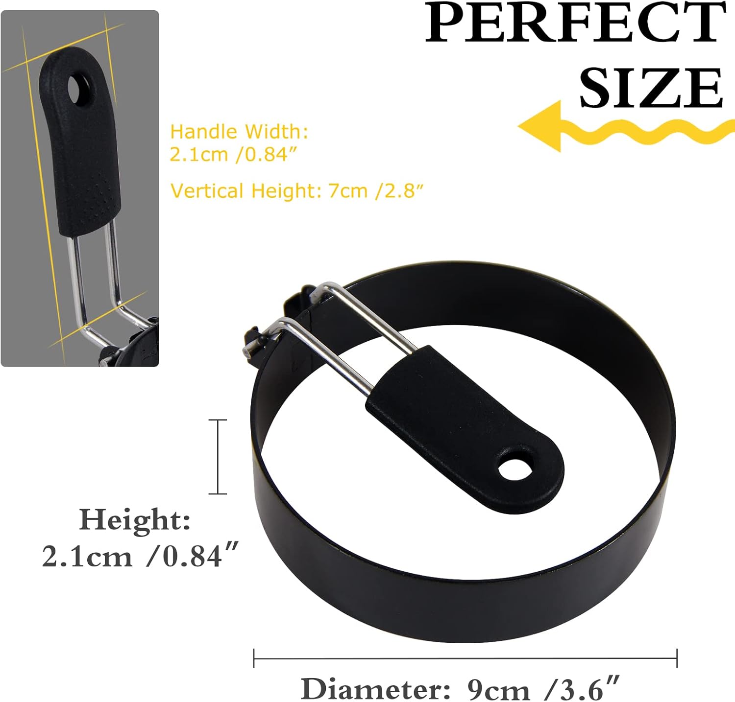 3 packs 3.5'' Egg Rings Set with Silicone Handle, Stainless Steel Egg Cooking Rings,Nonstick,For Frying Eggs and Egg Mcmuffins, Egg Mold For Breakfast