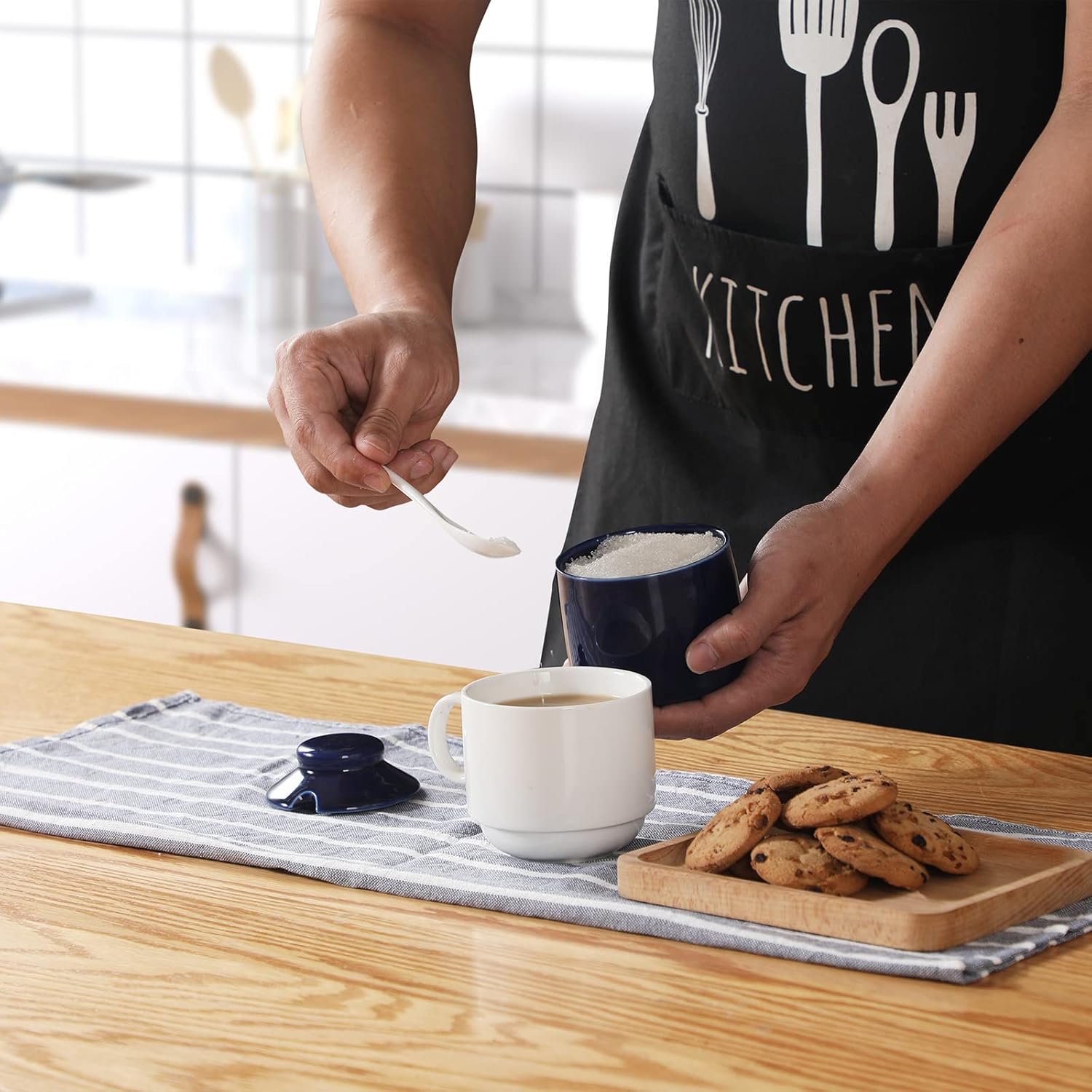 ONTUBE Ceramic Sugar Bowl with Lid and Spoon,Porcelain Seasoning Box Salt Bowl,8oz (Navy)