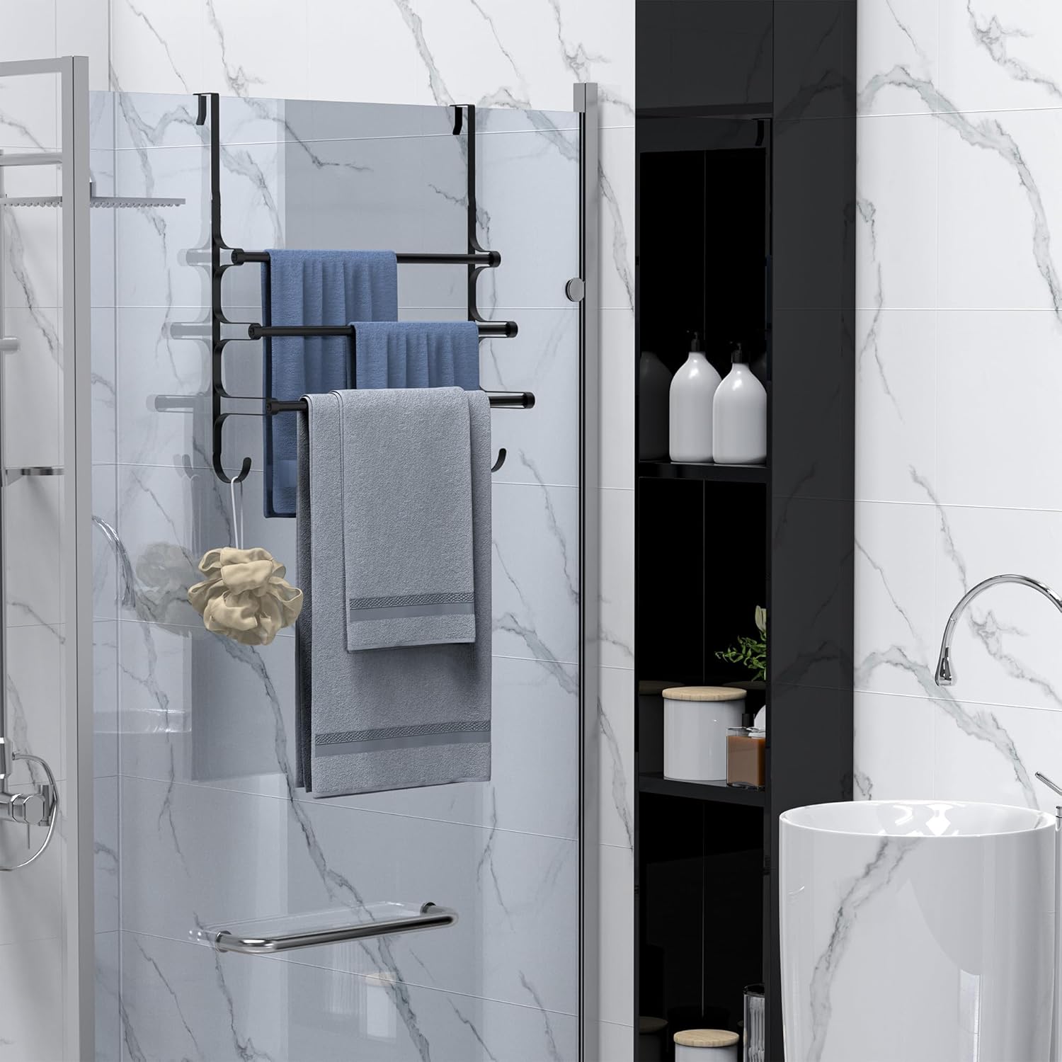 - 【Durable & Sturdy】 Durable over door towel rack for bathroom, made of quality metal material with powder coating finish, making this over the door towel rack sturdy and rust-resistant