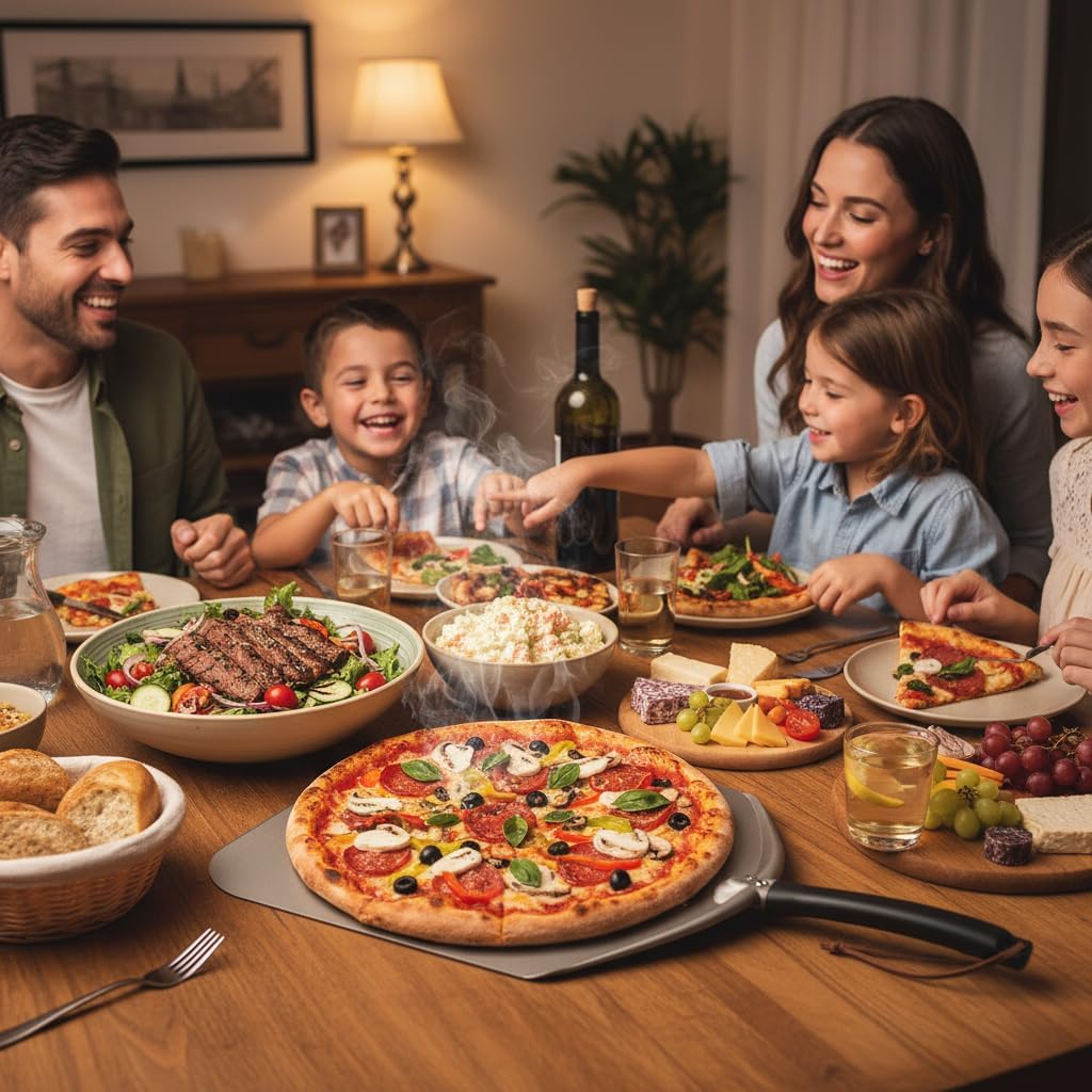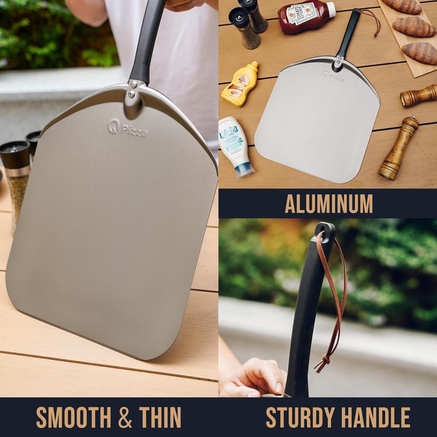 - 【LIGHTWEIGHT & EASY TO USE】 Made of aluminum, it's thin and lightweight, simply sprinkle your pizza peel metal surface with a little corn flour for a non stick surface, you can slide your pizza off of your spatula and onto your plate without any stress.
