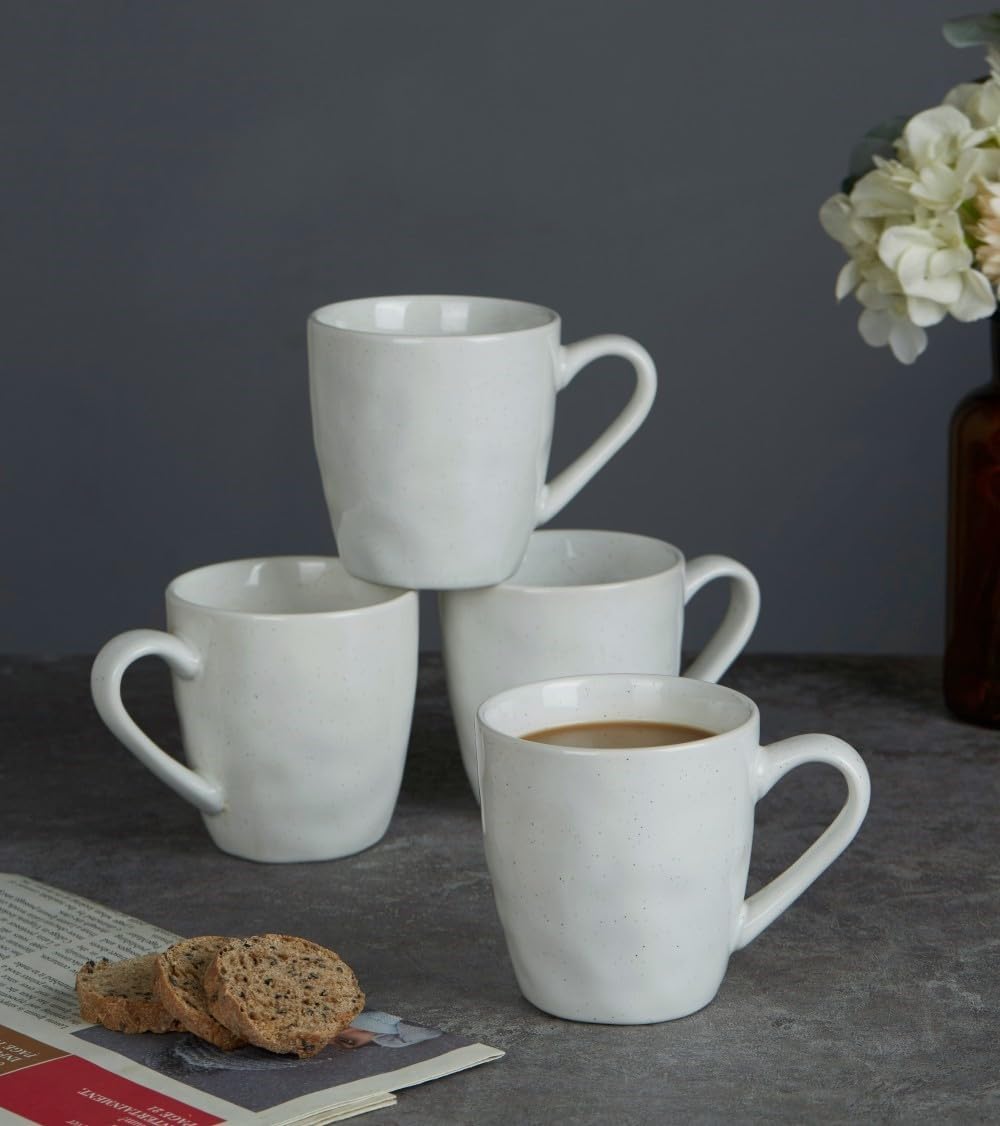 famiware Mars 4 Pieces Coffee Mug, 14 oz Tea Mug, Catering Mugs with Handle for Coffee, Tea, Cocoa, Milk, White