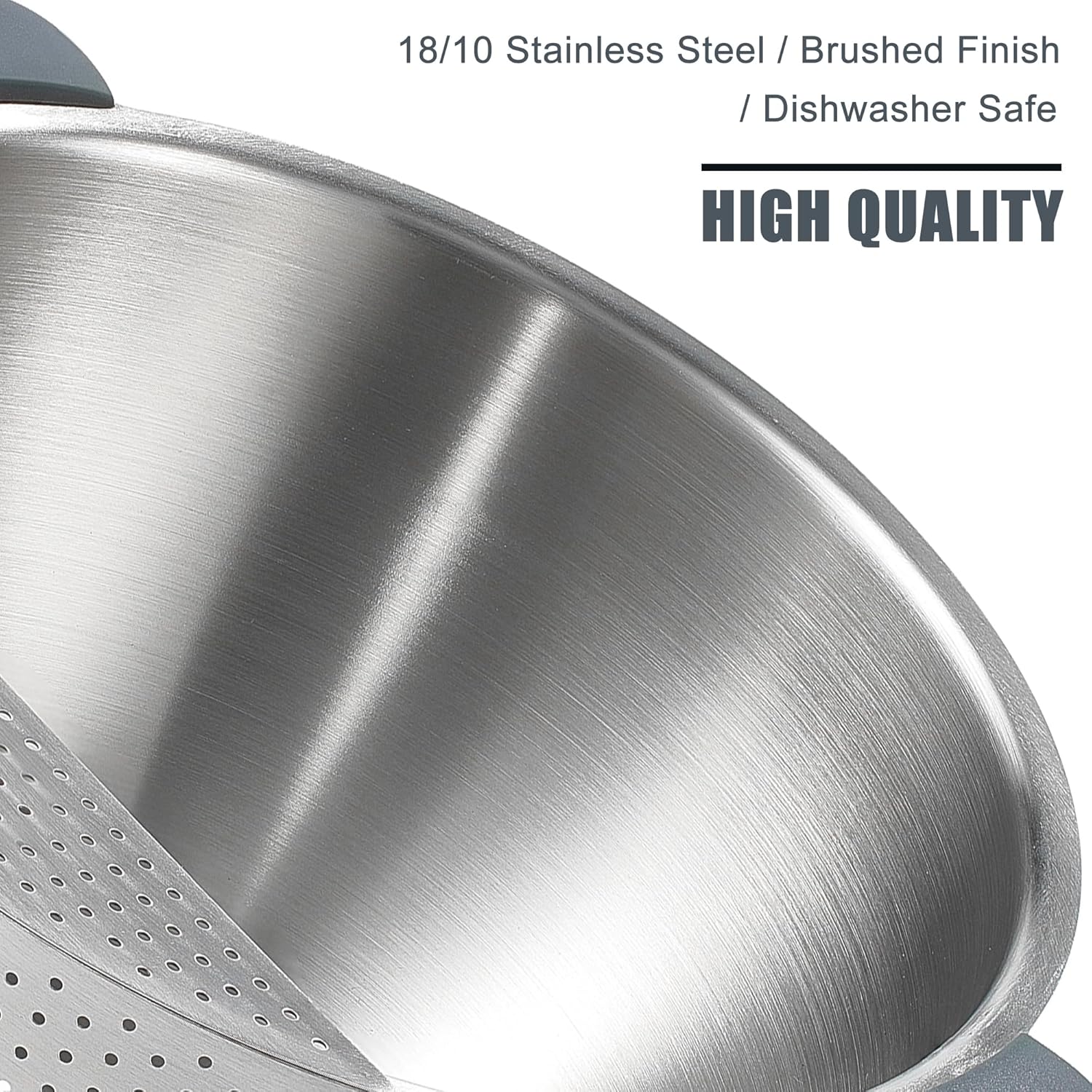 - Quick Drainage Colander Strainer: Equipped with fine drainage holes on the side, this stainless steel washing bowl ensures quick water drainage while preventing food from falling through.