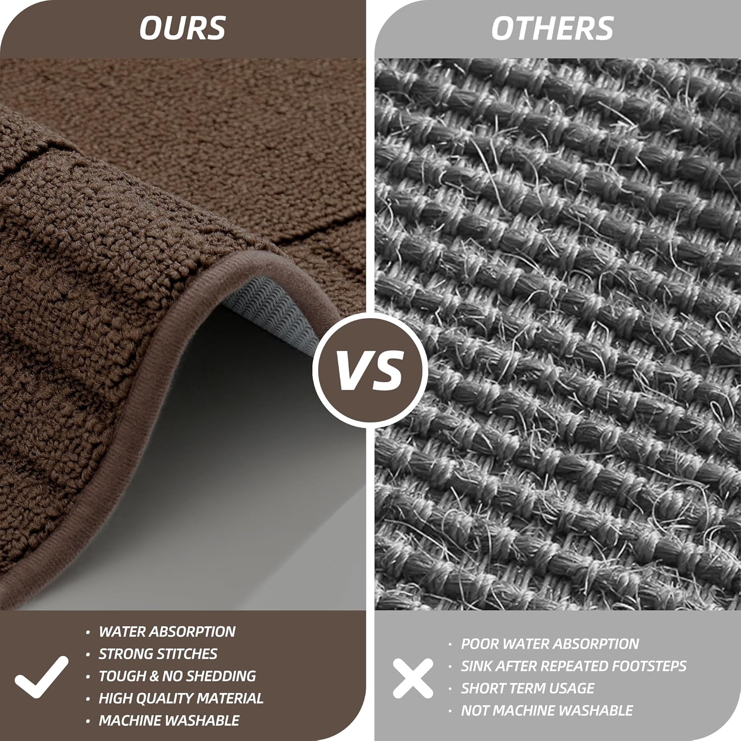 BEQHAUSE-Kitchen-Rugs-Anti-Slip-Kitchen-Mats-for-Floor Absorbent Kitchen Mat Set of 2 Washable Kitchen Runner Rug with TPR Non Skid Backing,Brown 24x35inch/24x60inch