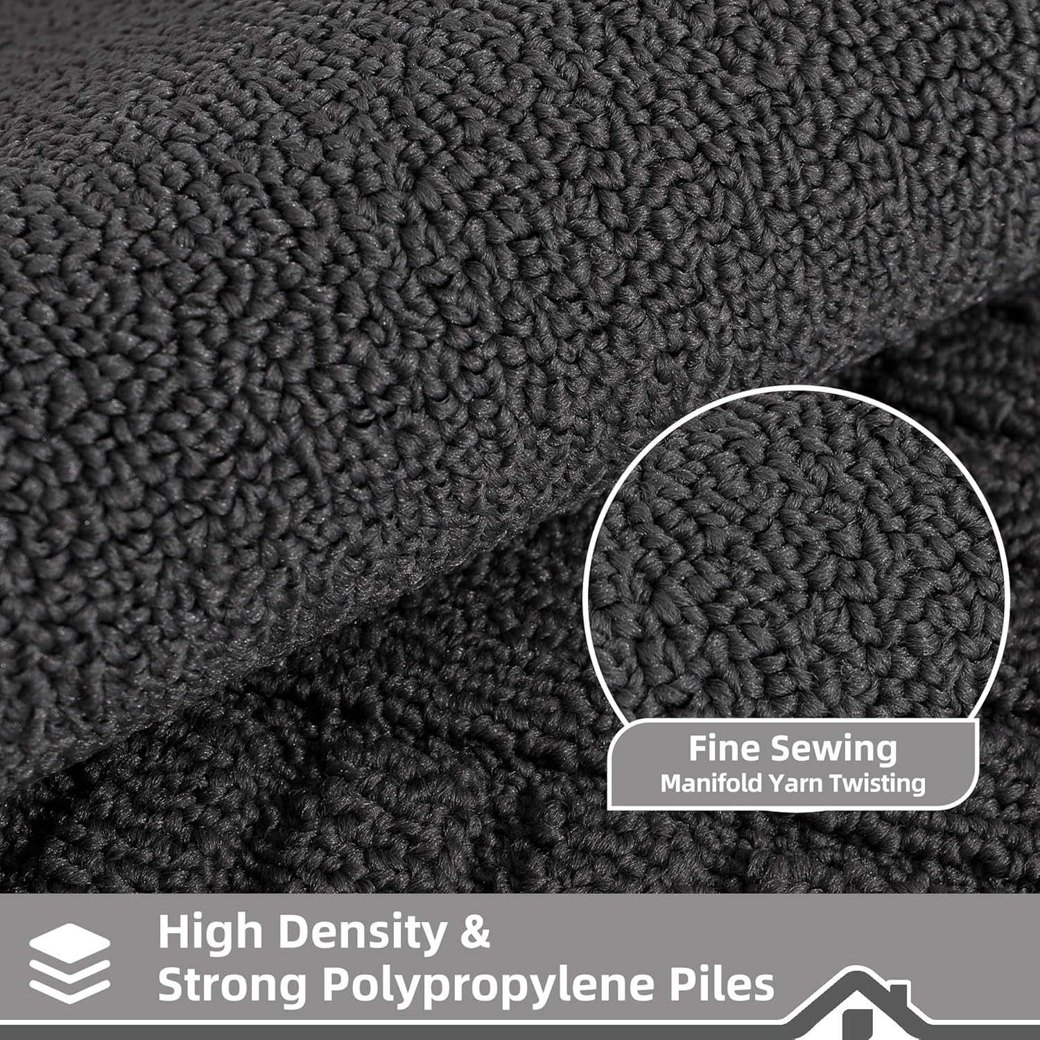 - Our kitchen mats for floor is made of wear-resisting Polypropylene fibers. The tight sewing makes the kitchen carpet more durable without snagging.The rugs for kitchen with great water absorption and stain-resistant properties protect the floor from oil, dampness, sauces or food particles.