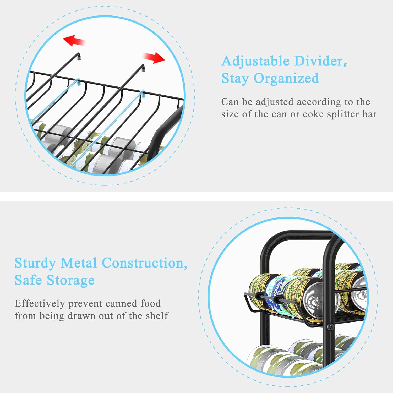 - 【Perfect Size】 - The can rack size is 16.89*12.44*35.35. Each tier comes with 2 adjustable dividers, which can help you sort and manage cans and beverages and keep the storeroom/cabinet/pantry in order.