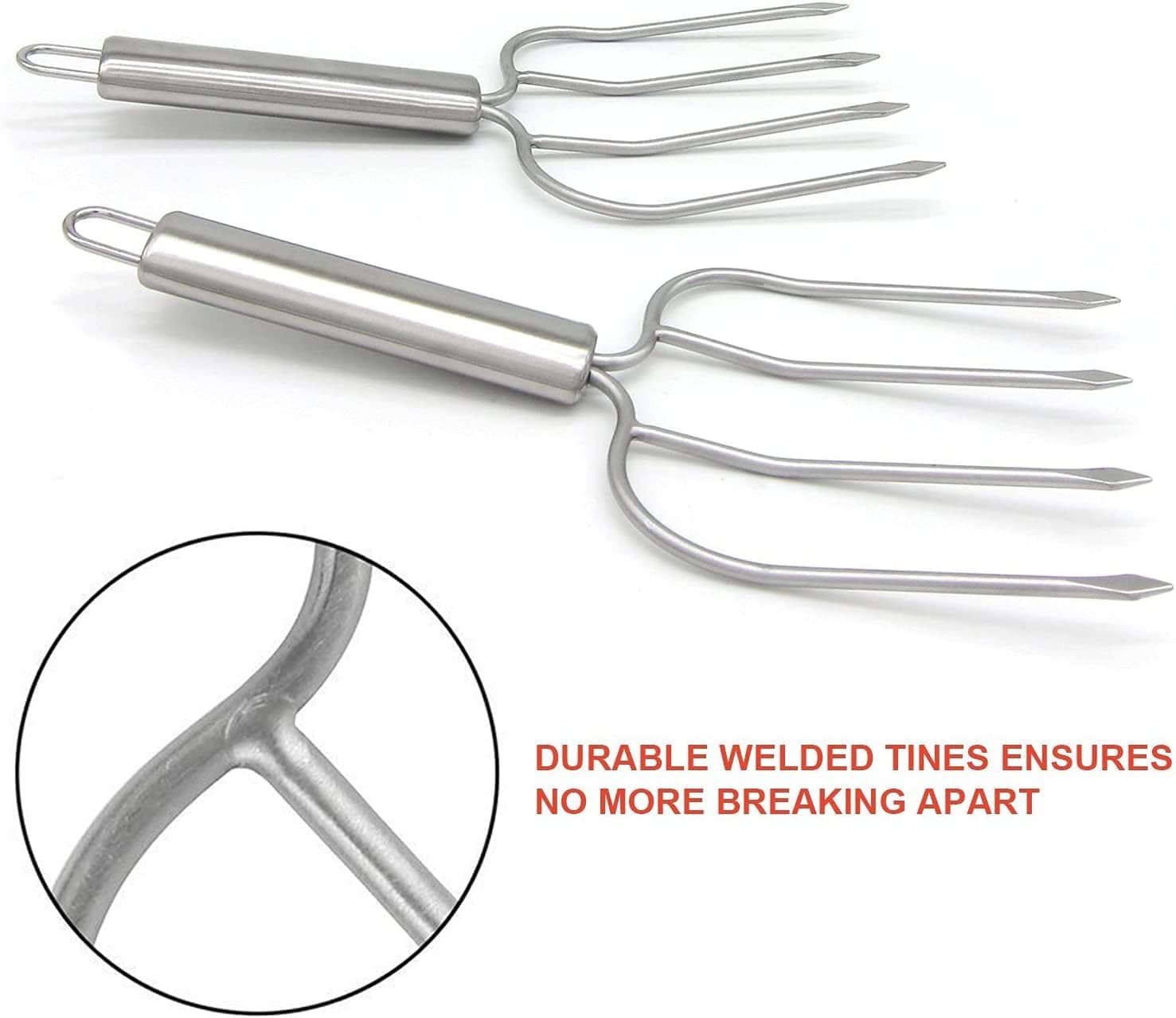 - TURKEY LIFTER FORKS - Transfer poultry from roasting pan to serving dish in one seamless motion. Crafted of durable stainless steel to support the weight of holiday-size turkeys, ergonomic handles ensure superior balance and optimal comfort. After lifting the main course, use the tools for carving and serving at the table.