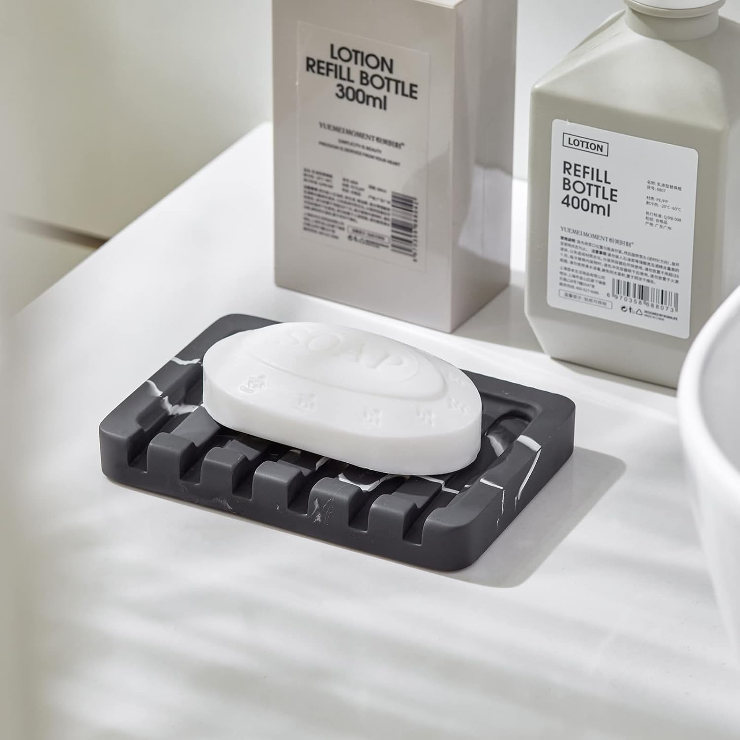 - Marble Pattern Soap Dish: The shower soap holder is black with white streak through it to create a cute marble like finish. Add a nice clean touch to your bathroom and kitchen, and complements your dรฉcor so well.