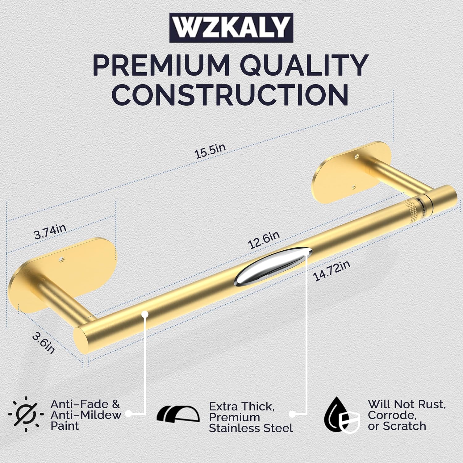 Paper Towel Holder Under Cabinet, Self Adhesive or Wall Mounted SUS304 Stainless Steel Paper Towel Holder for Kitchen, Farmhouse, Barbecue and Laundry (Brushed Gold)