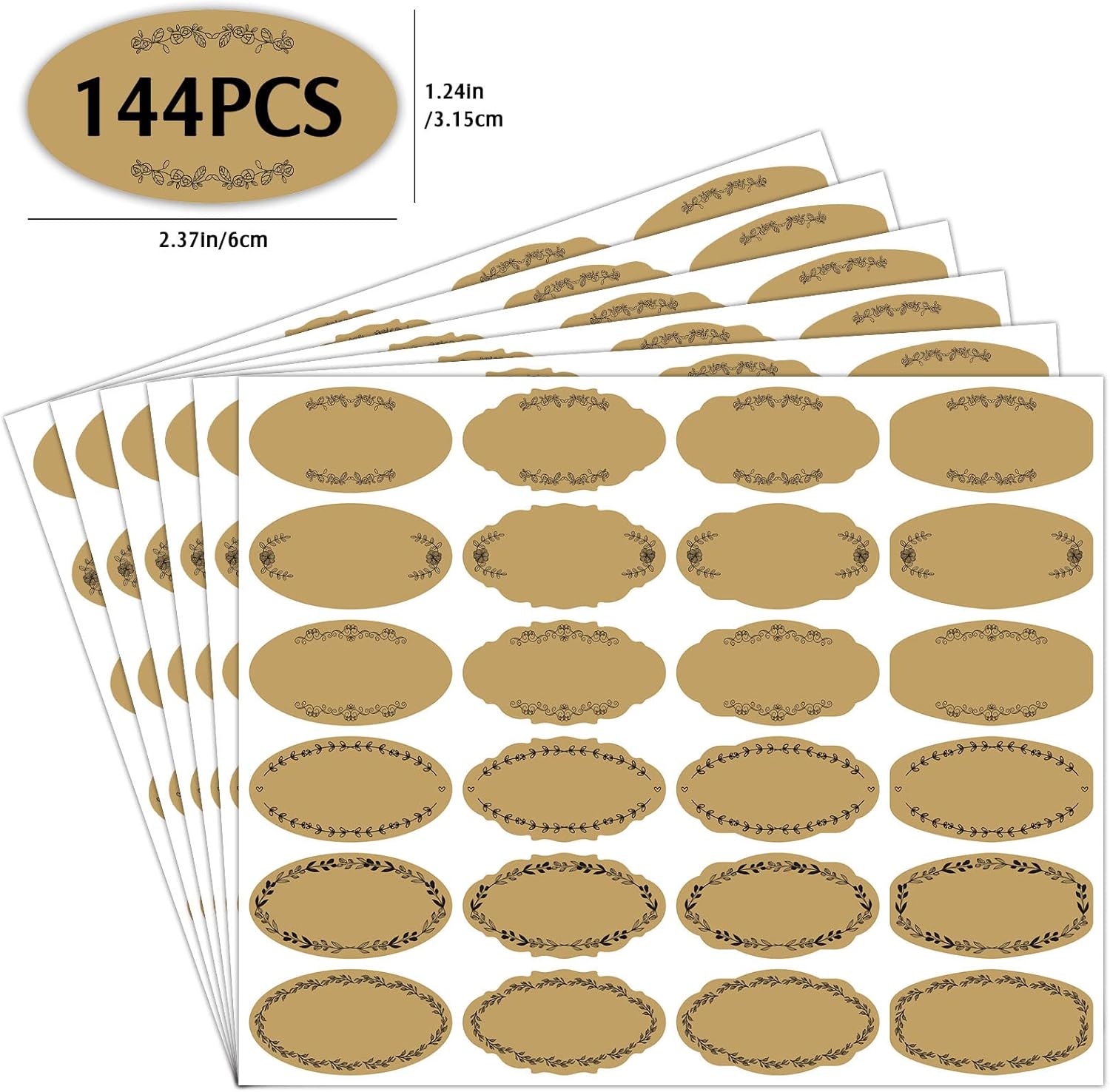 - MULTI-PURPOSE LABELS - The retro patterns and classic oval shape make these brown jar labels decorate your pantry well. Perfect for everything that needs to be labeled in your house and office, such as clothes cabinet organizer, kitchen and household supplies, bakers rack with wine storage, folders, custom party favor for housewarming or birthday