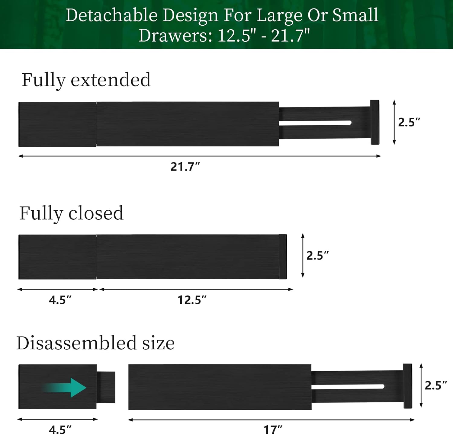 - Adjustable Drawer Dividers: Adjustable drawer dividers range from 11.8-17 inches in length; fits easily in most drawers to keep your belongings organized and easy to access
